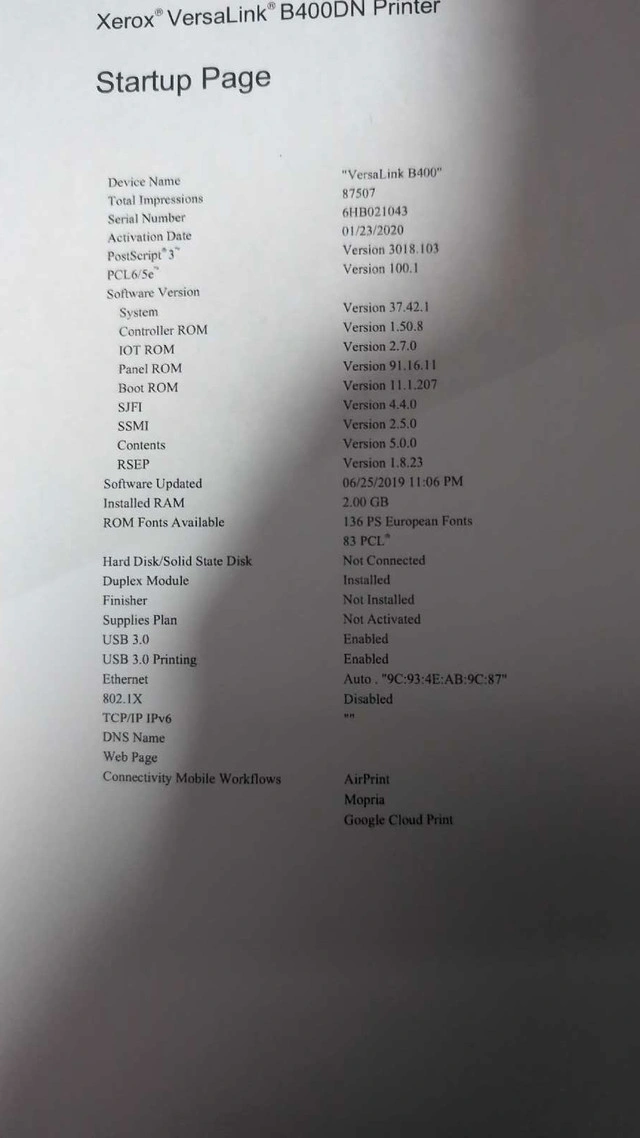 I'm selling a used Xerox VersaLink B400DN printer that delivers a reliable and efficient printing solution. This printer is known for its high-quality output and robust performance. It's perfect for businesses requiring crisp, clear documents and can handle a variety of paper sizes and types. Key Features: * Print Speed: Up to 47 ppm (pages per minute) * Resolution: Up to 1200 x 1200 dpi * Paper Capacity: 550-sheet standard tray, with optional trays available * Connectivity: USB, Ethernet * Duplex Printing: Automatic two-sided printing I've checked online and similar used printers are typically listed between $200 and $400 CAD. Given this printer's excellent condition, I've priced it competitively. If you're seeing this ad, the printer is still up for grabs, so don't hesitate to reach out!