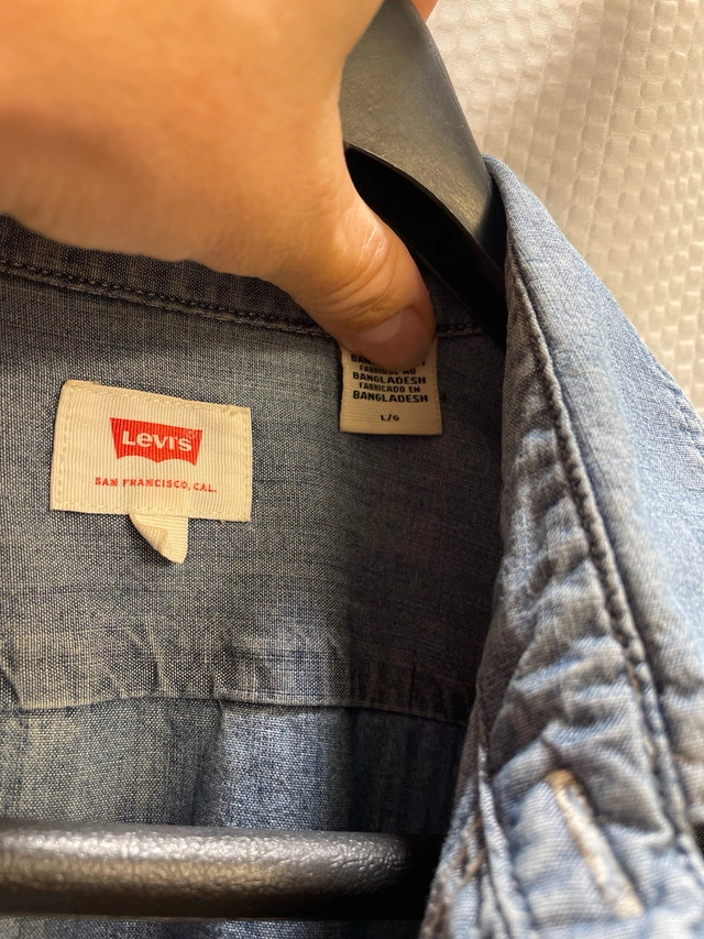 Elevate your casual wardrobe with this Levi's denim shirt, featuring long sleeves and a classic button-down design. This shirt is in good, used condition, perfect for a relaxed yet stylish look. The shirt is a size Large (L). Specifications: * Brand: Levi's * Size: L * Colour: Blue Denim * Sleeve Length: Long Sleeve * Style: Button-Down If the ad is up, it's available – no need to wonder!