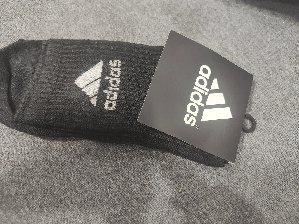 Brand new with tags, these Adidas socks are super soft and comfy! They're made of 80% combed cotton, 15% nylon, and 5% spandex, so they're breathable and have a bit of stretch. They also have an antibacterial deodorant treatment to keep your feet fresh.