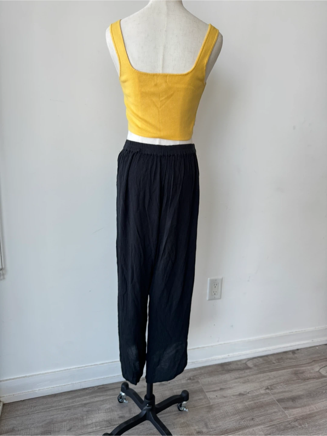 Flowy black gauze harem pants, perfect for summer! They're lightweight and super comfy