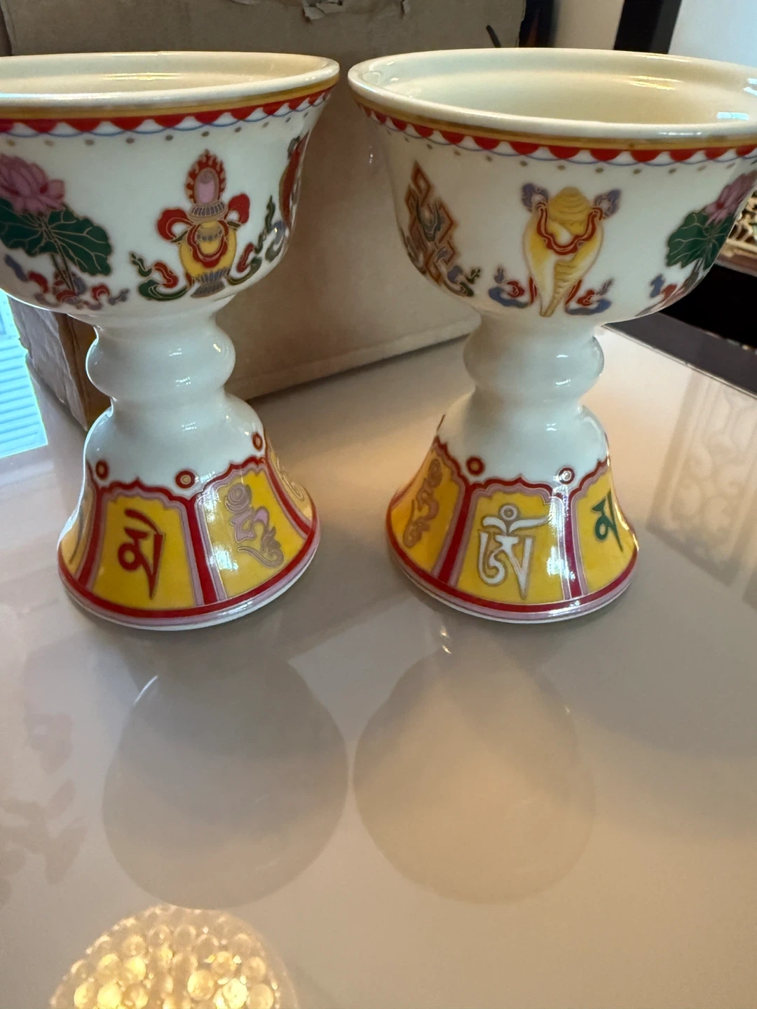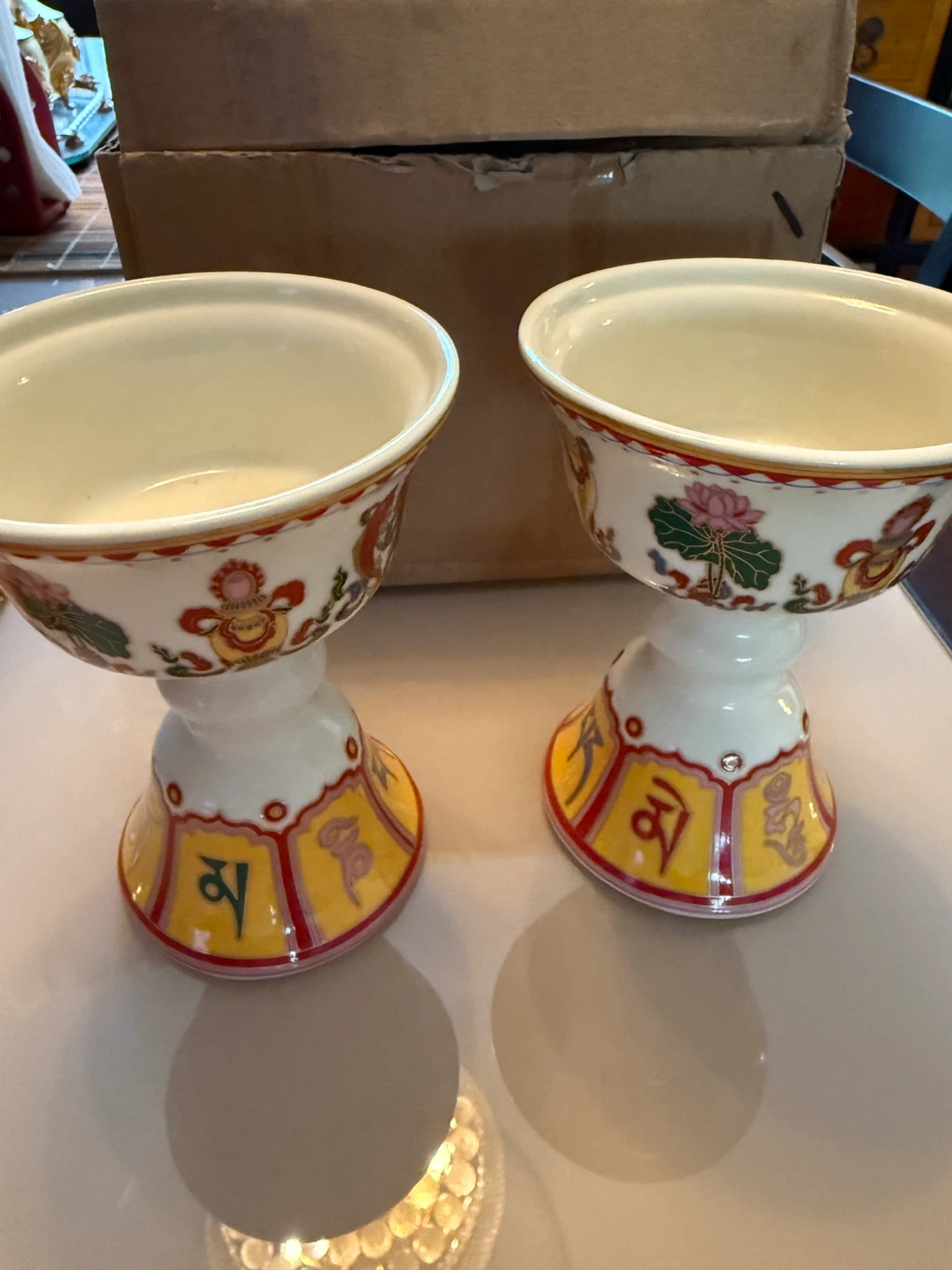 Selling a pair of decorative Tibetan Buddhist offering bowls. They feature colorful designs and brand new!Perfect for adding a touch of serenity to your space!🥕