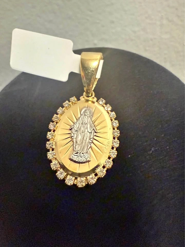18K Gold Fill Virgin Mary pendant with Cubic Zirconia stones