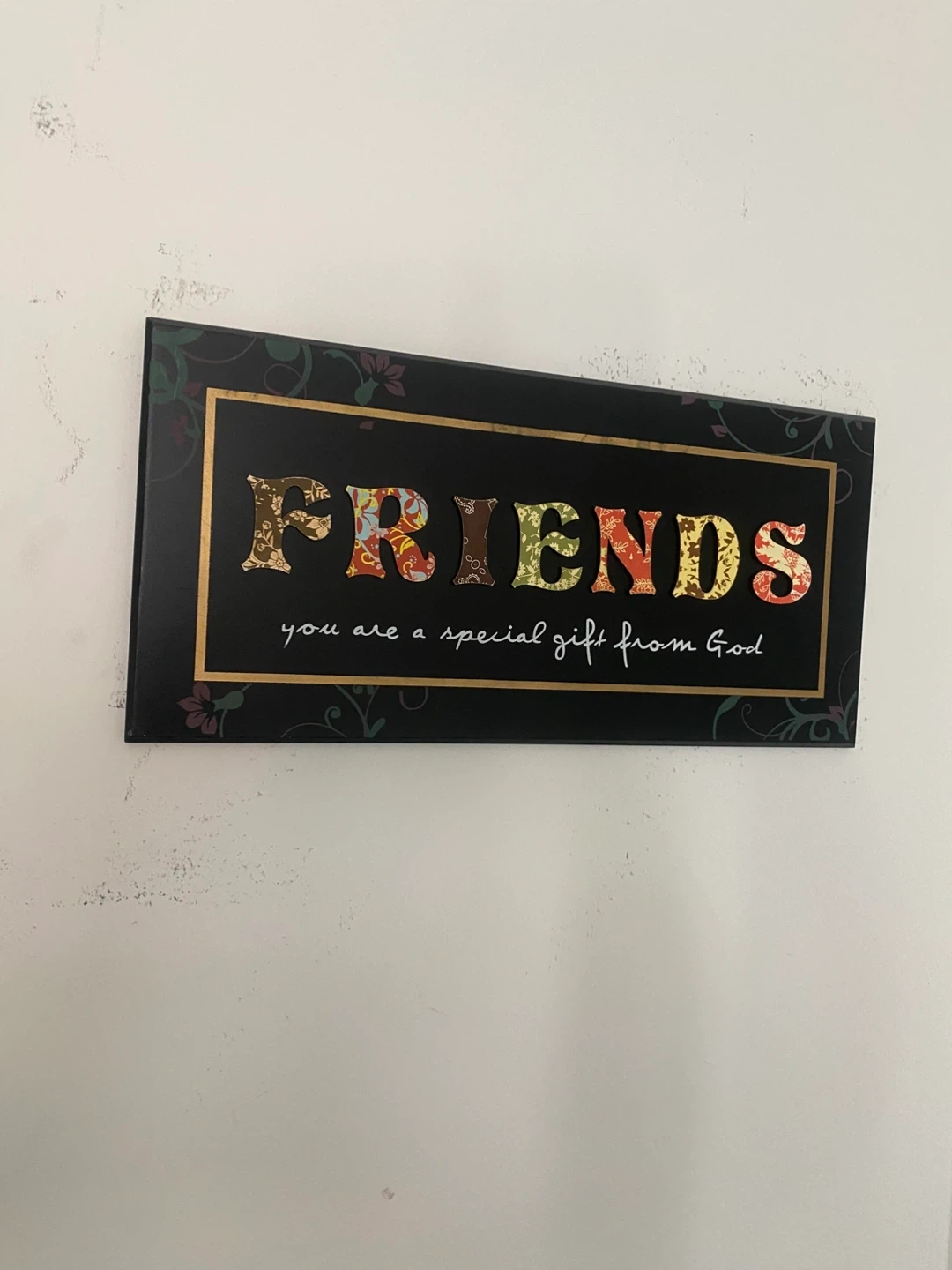 Wall decor with the word "FRIENDS" in decorative lettering