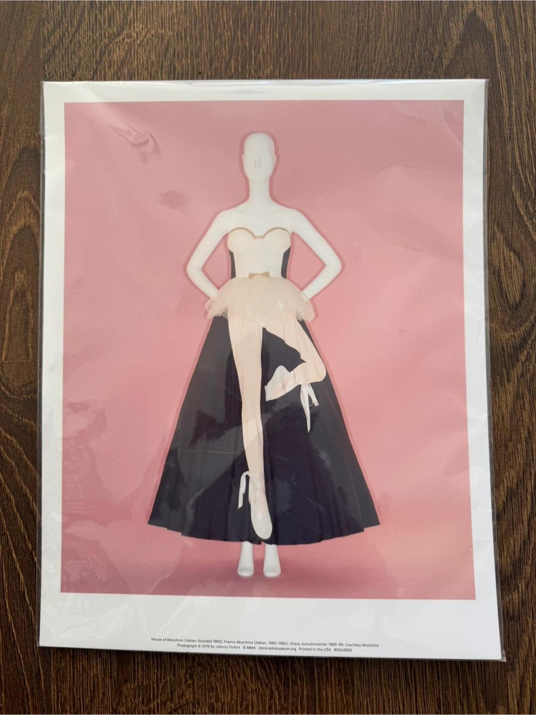 I'm selling a print of a Moschino dress from the autumn/winter 1989-90 collection. The photograph is by Johnny Dufort and is courtesy of Moschino. It was printed in the USA and purchased at the Met. 11”x14”. Original packaging.