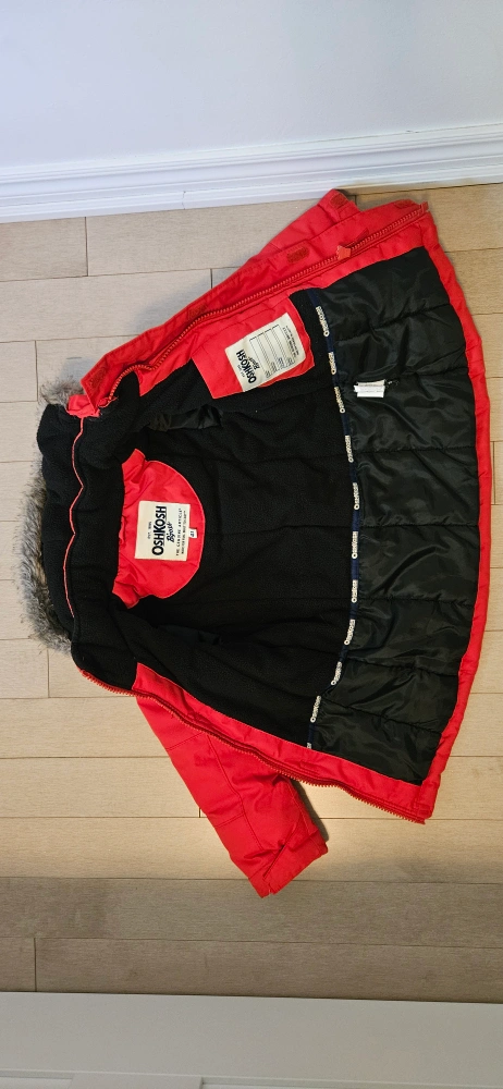 Selling a gently used OshKosh B'gosh winter coat in size 4T. It's red and perfect for keeping your little one warm during the colder months. The coat features a faux fur trim around the hood and a comfortable lining. It's in great condition and ready for a new home