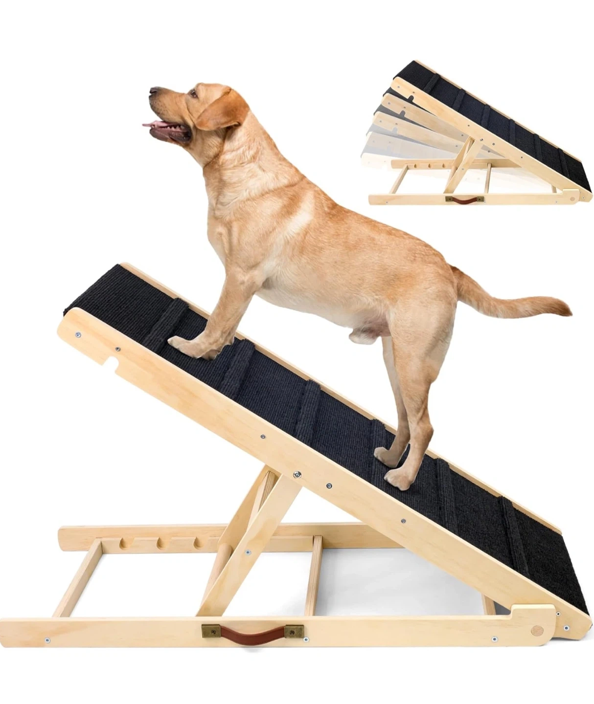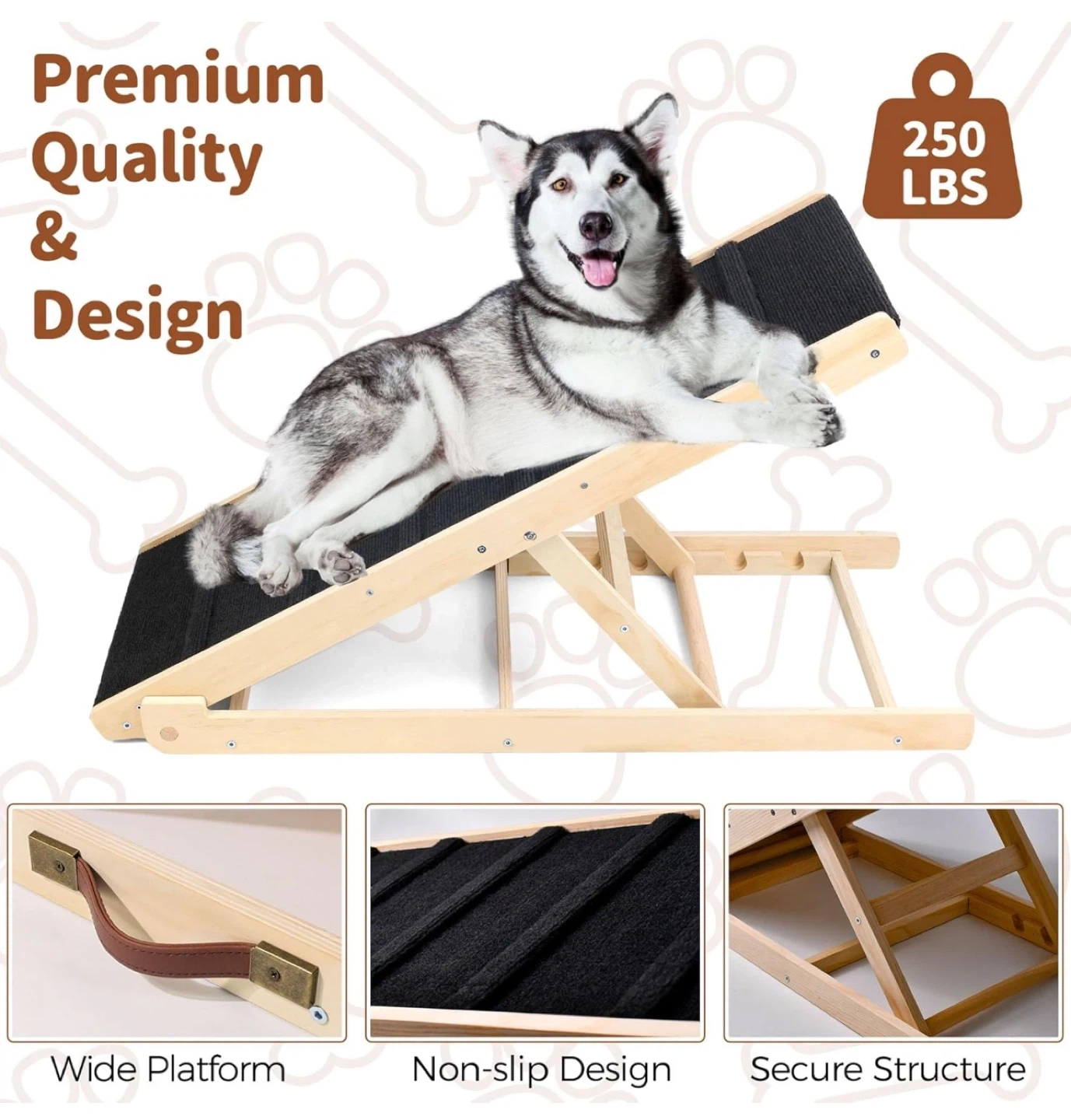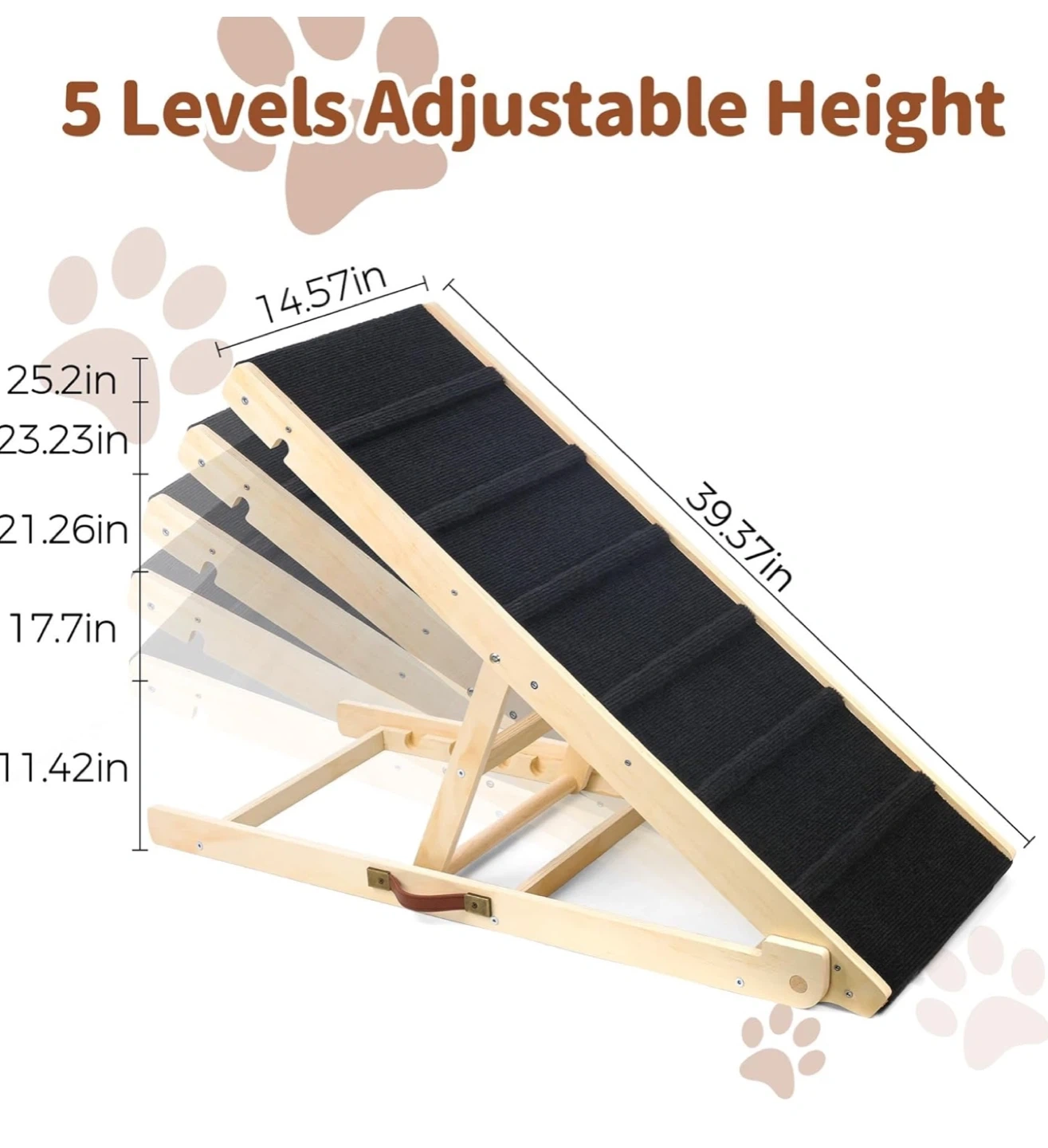 Adorabby Wooden Dog Stairs BNIB Adjustable Pet Dog Ramp with 5 Height Adjustable from 10”to 24” Up to 250LBS, Non-Slip Collapsible High Traction Ramps for Bed Couch Sofa Car Small Large Pet Indoor Outdoor See pics for measurements