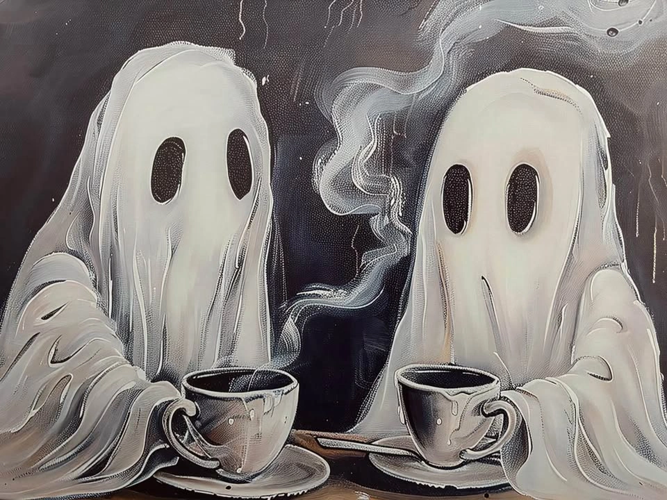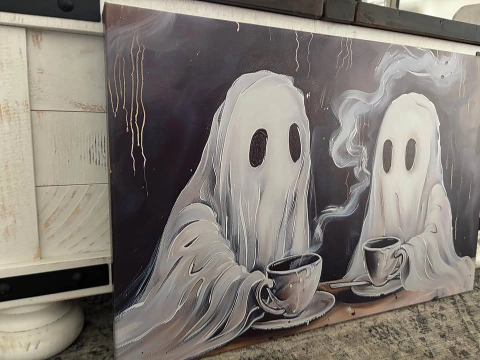 Brand new canvas wall art, two ghosts having coffee. Framed onto 23.6”X15.7”X1.5” wooden frame. Pick up in North Bowmanville near Middle Rd and Northglen Blvd.