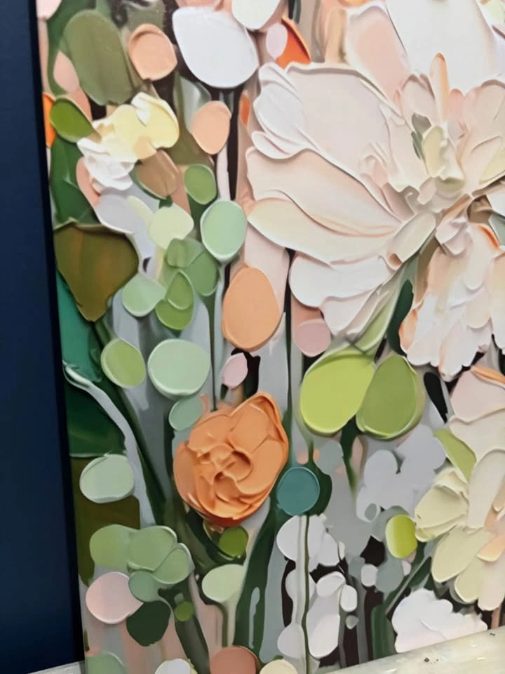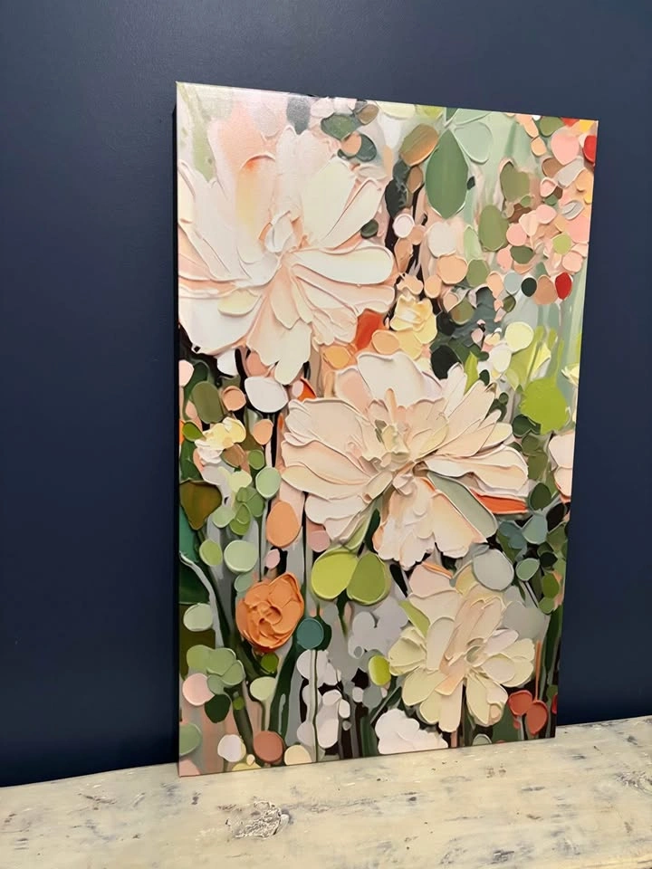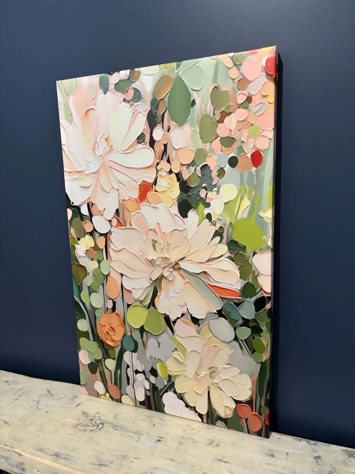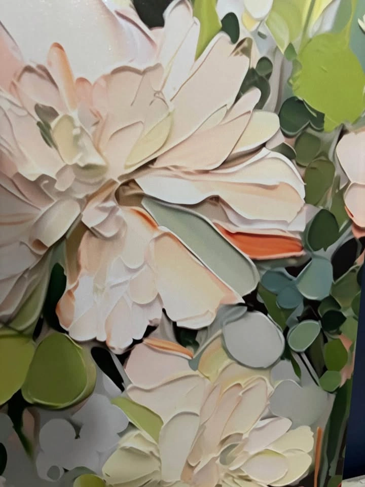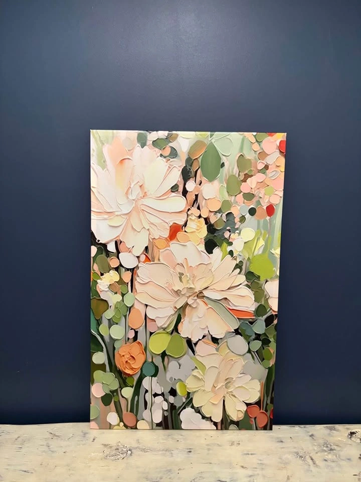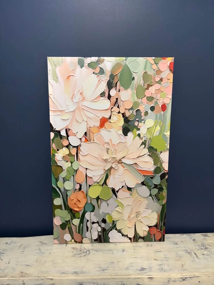 Bohemian floral print on canvas wall art. This print is 2D, it is not textured. It is only designed to look 3D. 31.5”X19.75”X1.5”. Pick up in North Bowmanville near Middle Rd and Northglen Blvd.