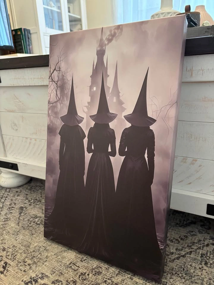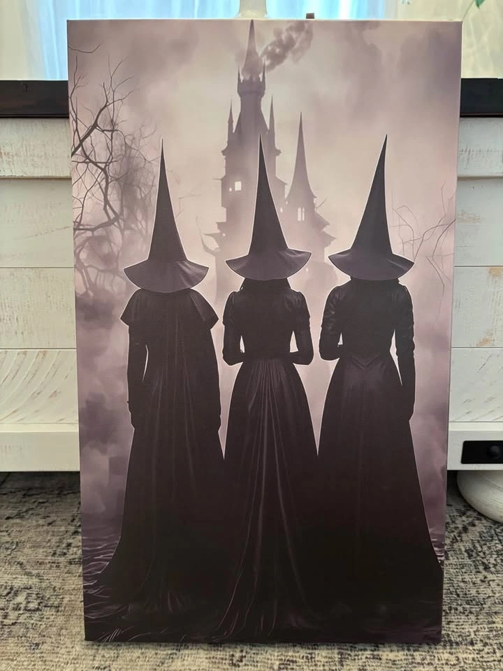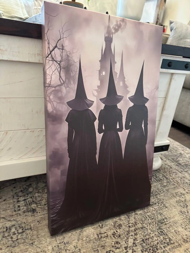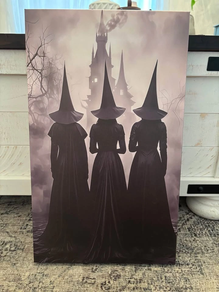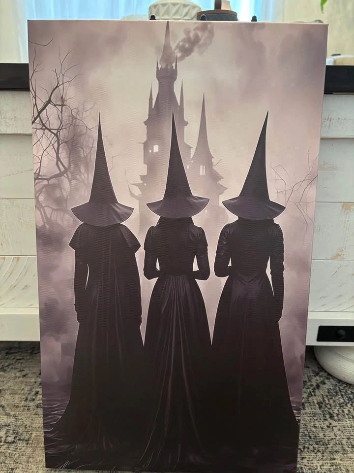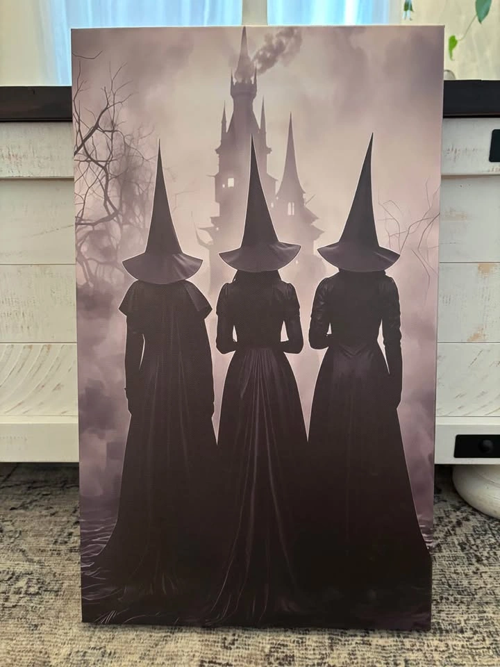 Amazing three witches print on canvas. Framed onto 19.6”X11.7”X1.5” wooden frame, light weight and ready to hang. Pick up in North Bowmanville near Middle Rd and Northglen Blvd.