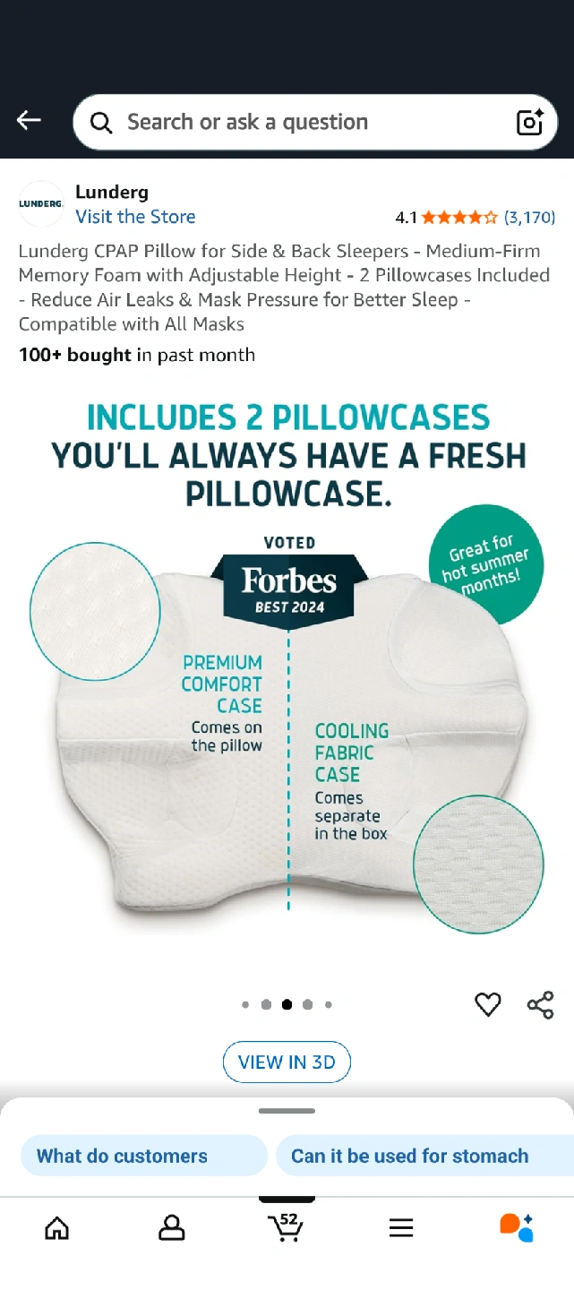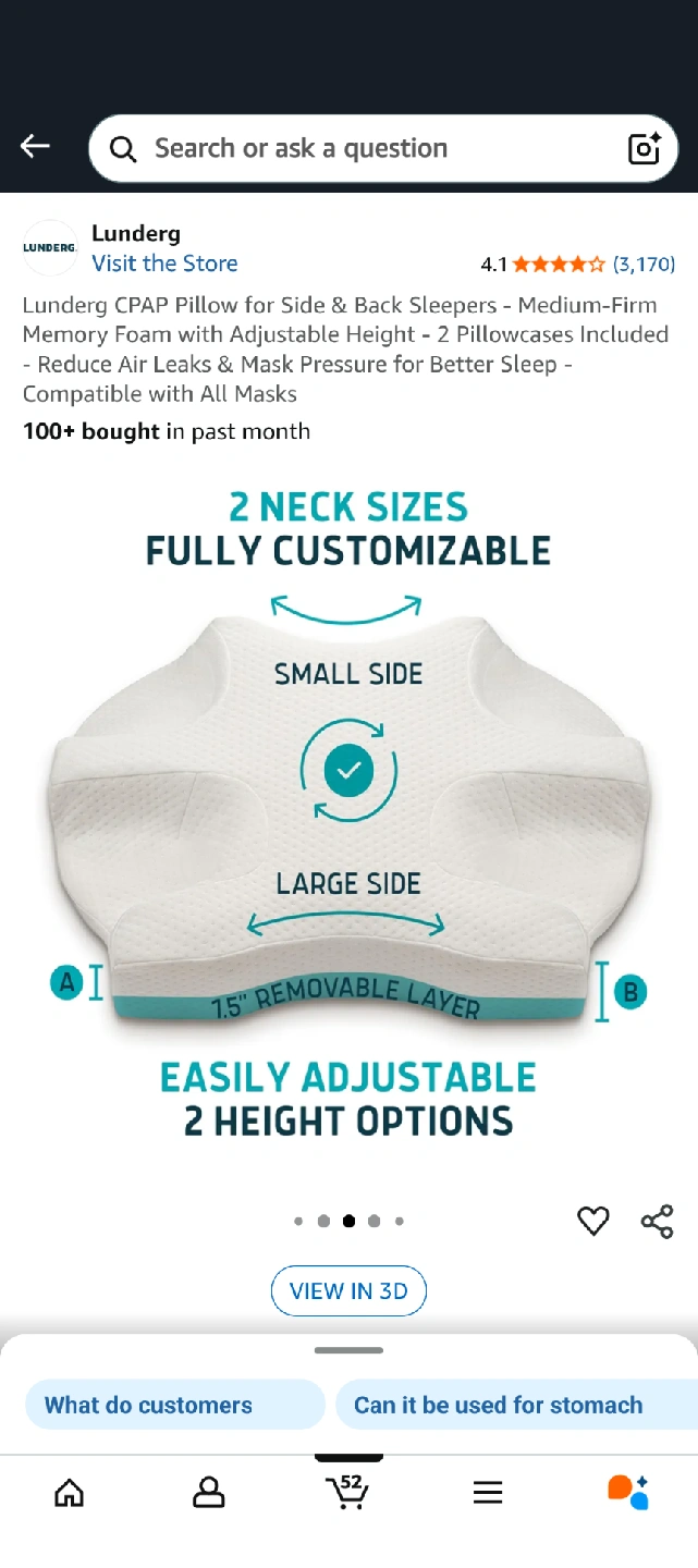 Looking to sell a Lunderg CPAP Pillow for side and back sleepers. It's made of medium-firm memory foam and has an adjustable height. It also includes two pillowcases so you'll always have a fresh pillowcase. It's compatible with all masks and has two neck sizes that are fully customizable. There are also two easily adjustable height options.