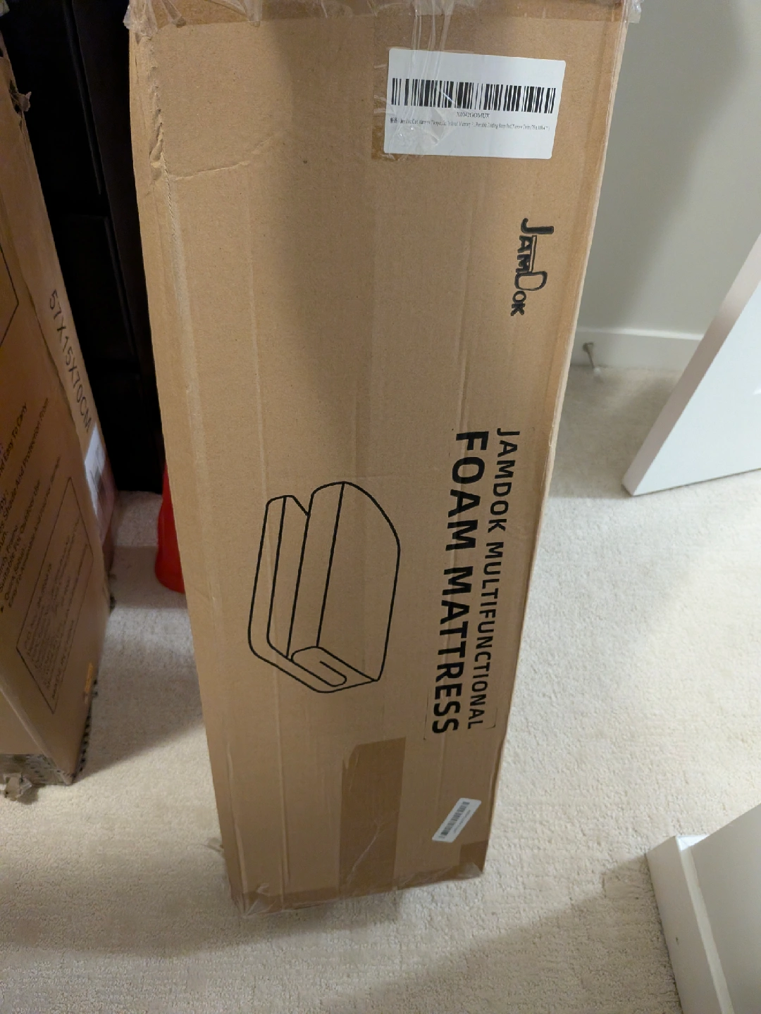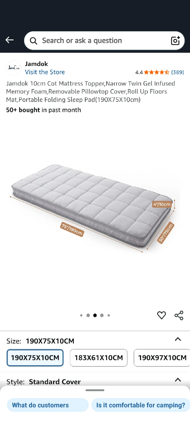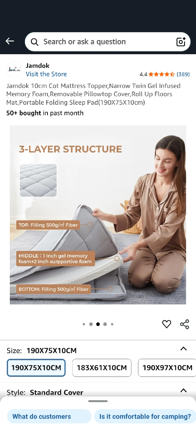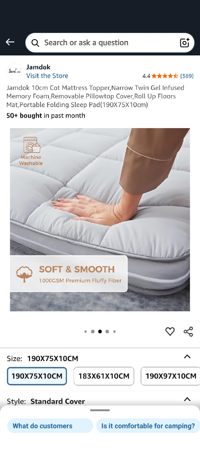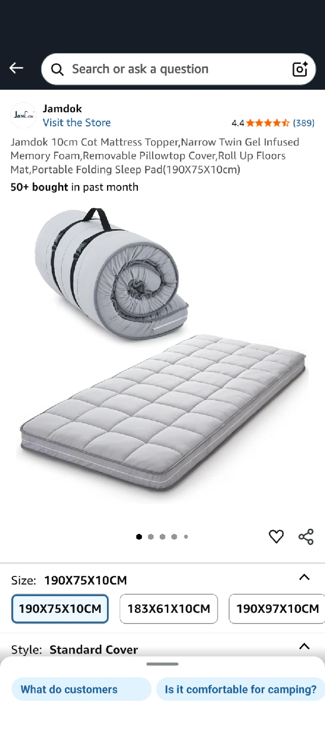 Selling a brand new Jamdok 10cm cot mattress topper! It's a narrow twin gel-infused memory foam mattress with a removable pillowtop cover. It can be rolled up for floors or used as a portable folding sleep pad. Dimensions are 190x75x10cm. Comes in the original box!