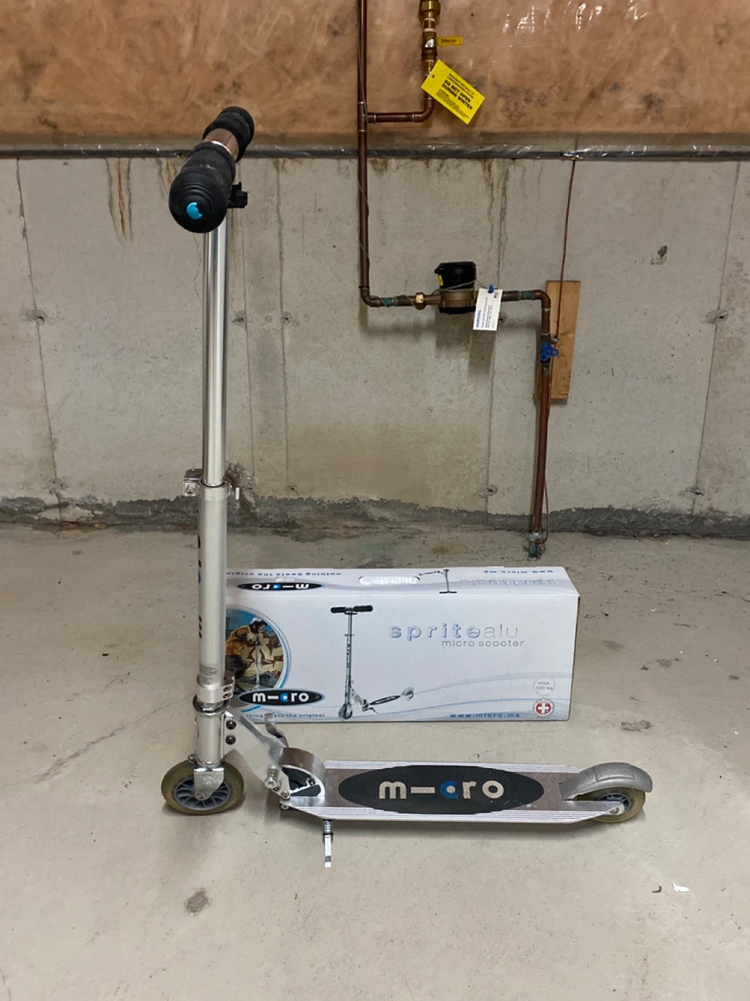 Selling a Micro Sprite Alu scooter! It's in great condition and ready for a new home. This scooter is lightweight and easy to handle, perfect for kids learning to scoot. Comes with the original box!