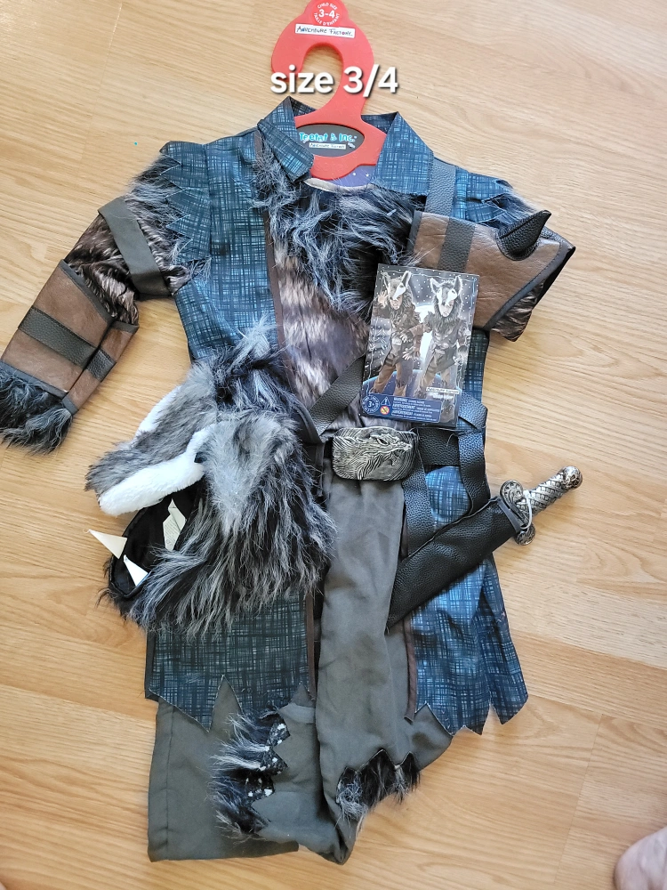 Howling with excitement! This Adventure Factory werewolf costume is perfect for your little monster. Size 3/4, ready for dress-up and spooky fun!