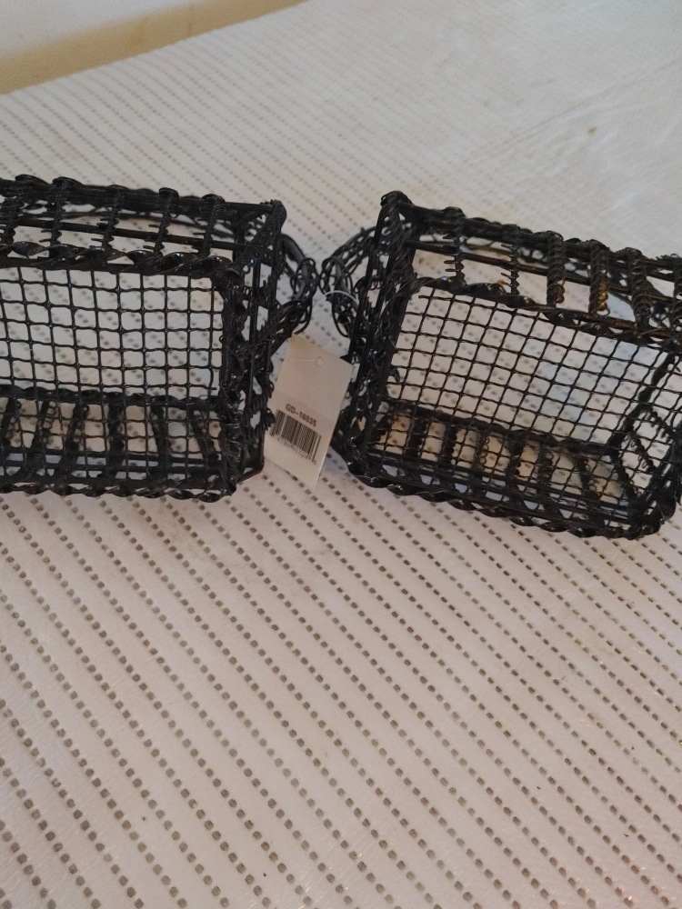 Selling a set of two black wire baskets! They're in great condition and would be perfect for organizing small items or adding a rustic touch to your decor 5$ each
