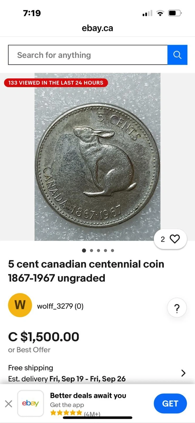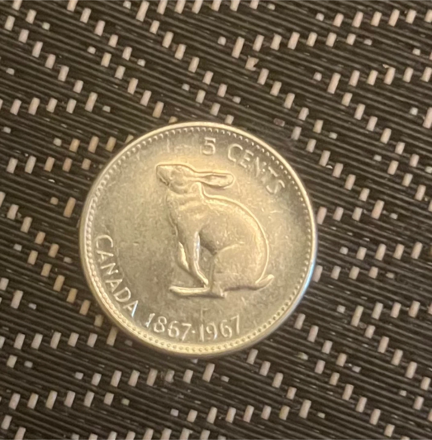 Selling a 1967 Canadian 5 cent coin featuring a rabbit design! A unique piece of Canadian history for collectors