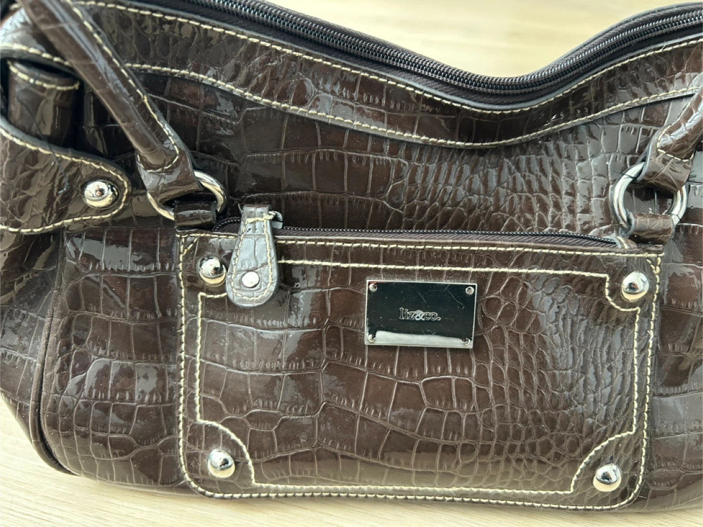 Selling a Liz Claiborne purse in a lovely brown faux crocodile pattern! It's a stylish and practical accessory for everyday use, perfect for carrying your essentials with a touch of elegance