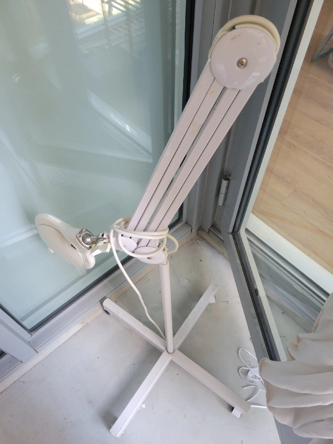 Selling a magnifying floor lamp in great condition! It's perfect for reading, crafting, or any task that requires a closer look. The lamp is white and has a sturdy base for stability. It's also adjustable, so you can position the light exactly where you need it