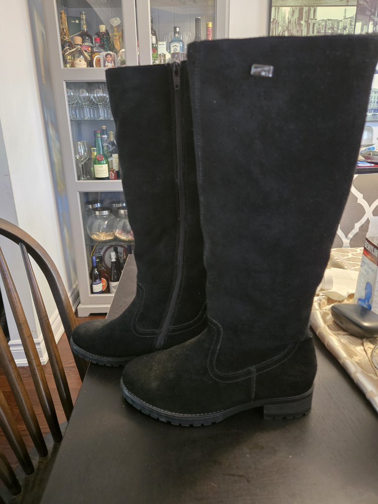 Cozy Remonte winter boots in great condition! These are a size 37, which is approximately a size 6.5 in Canadian sizing. They're black suede with a warm, plush lining, perfect for keeping your feet toasty during the cold months