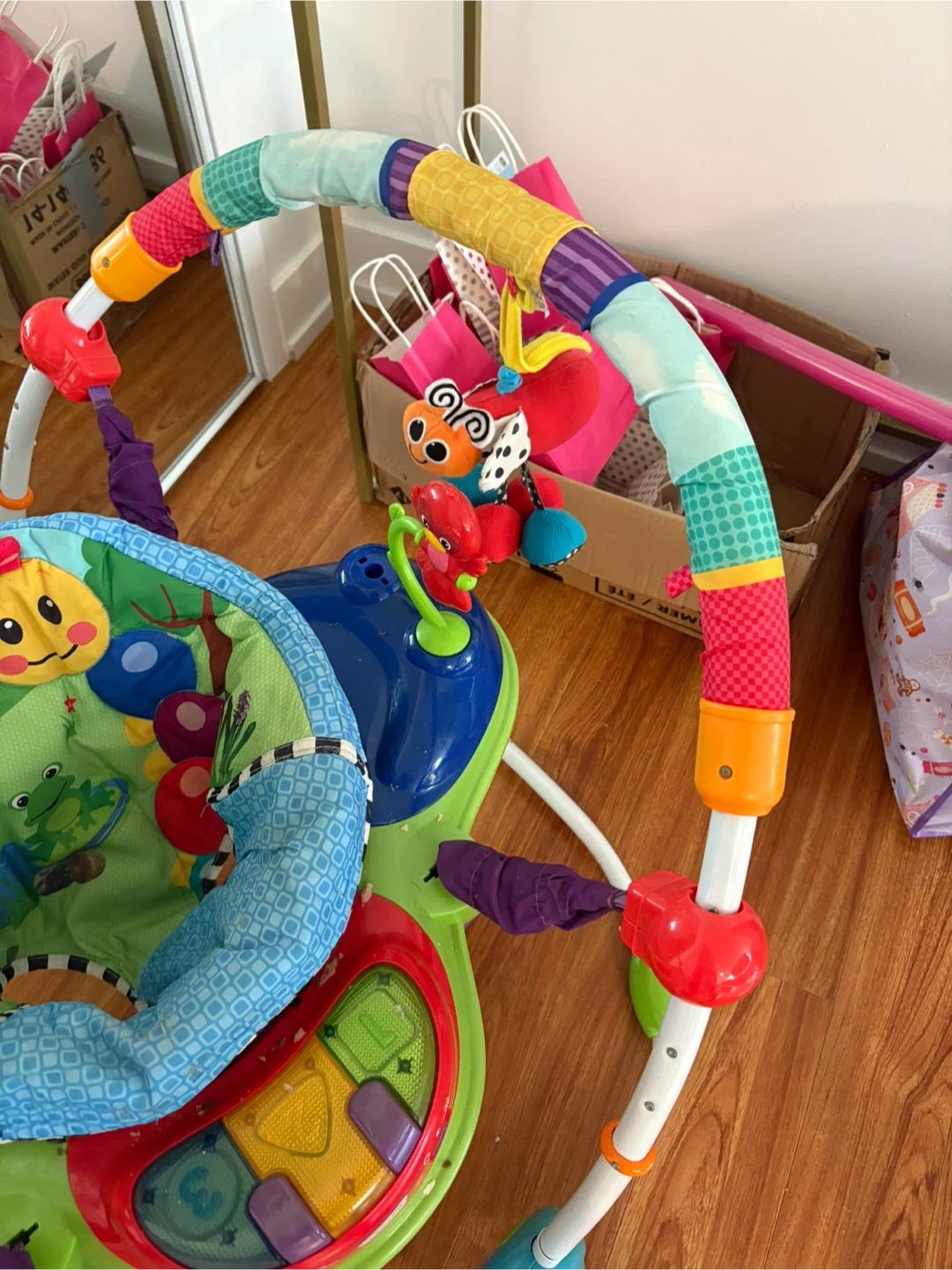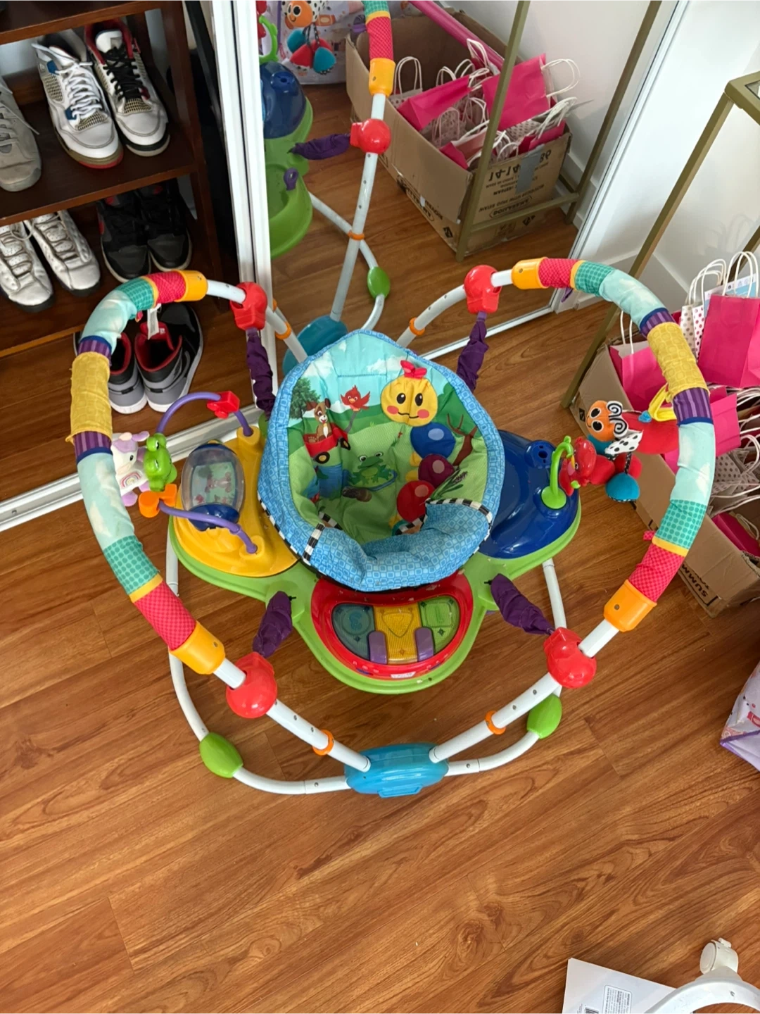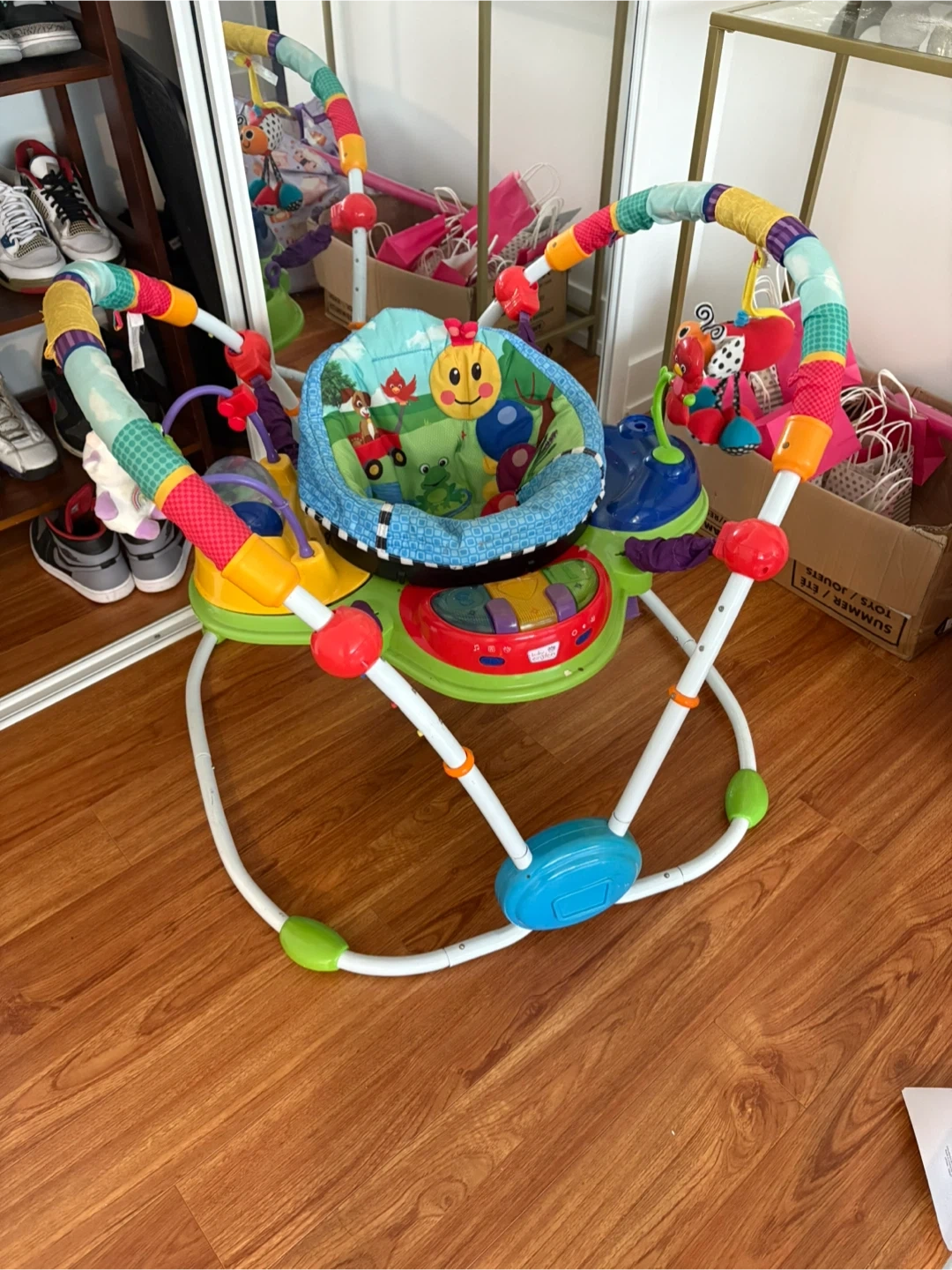 Baby Einstein Neighborhood Friends Activity Jumper with Lights and Melodies We got it for my daughter about a month ago and she absolutely hates it!! Now it just takes up space :((