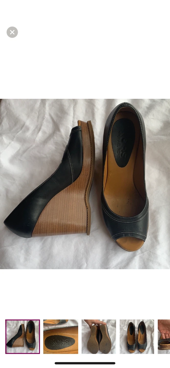 Gorgeous Michael Kors wedge heels in a size 8! They feature a black leather upper and a wooden wedge heel. Perfect for dressing up or down! Worn a couple of times and just sitting in my closet. Paid over $300 originally.
