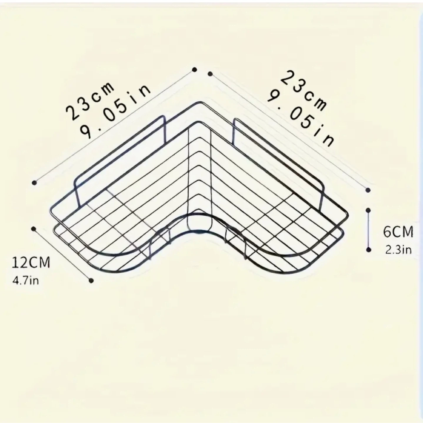 The shelf measures approximately 23cm x 23cm x 12cm (9.05in x 9.05in x 4.7in). It's a great way to maximize space in your bathroom and keep everything tidy