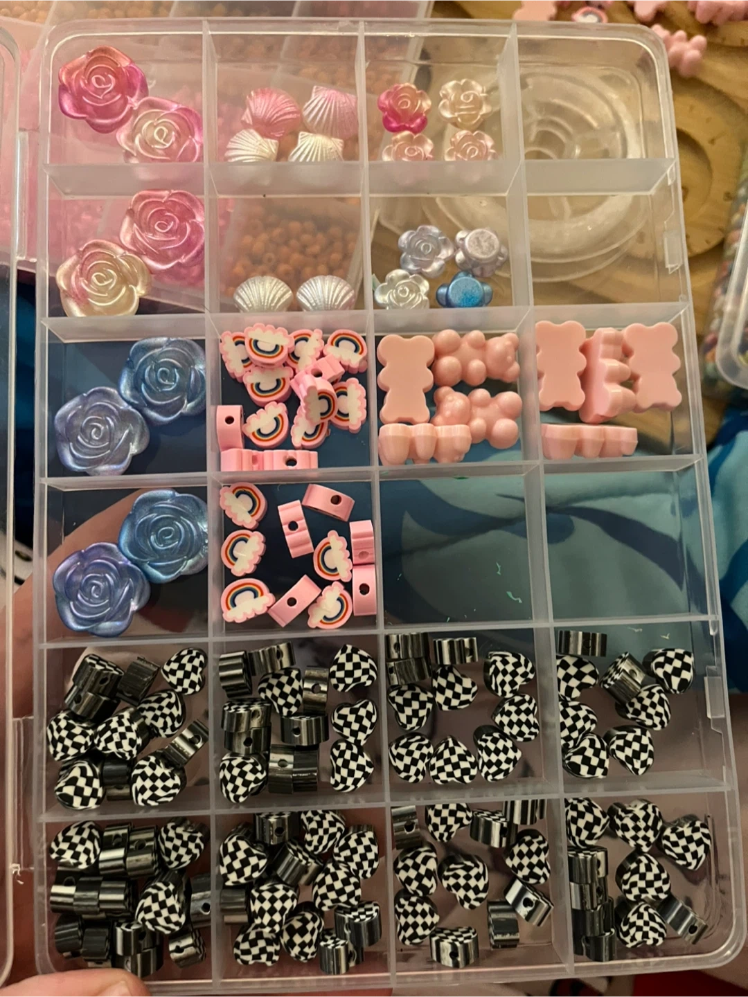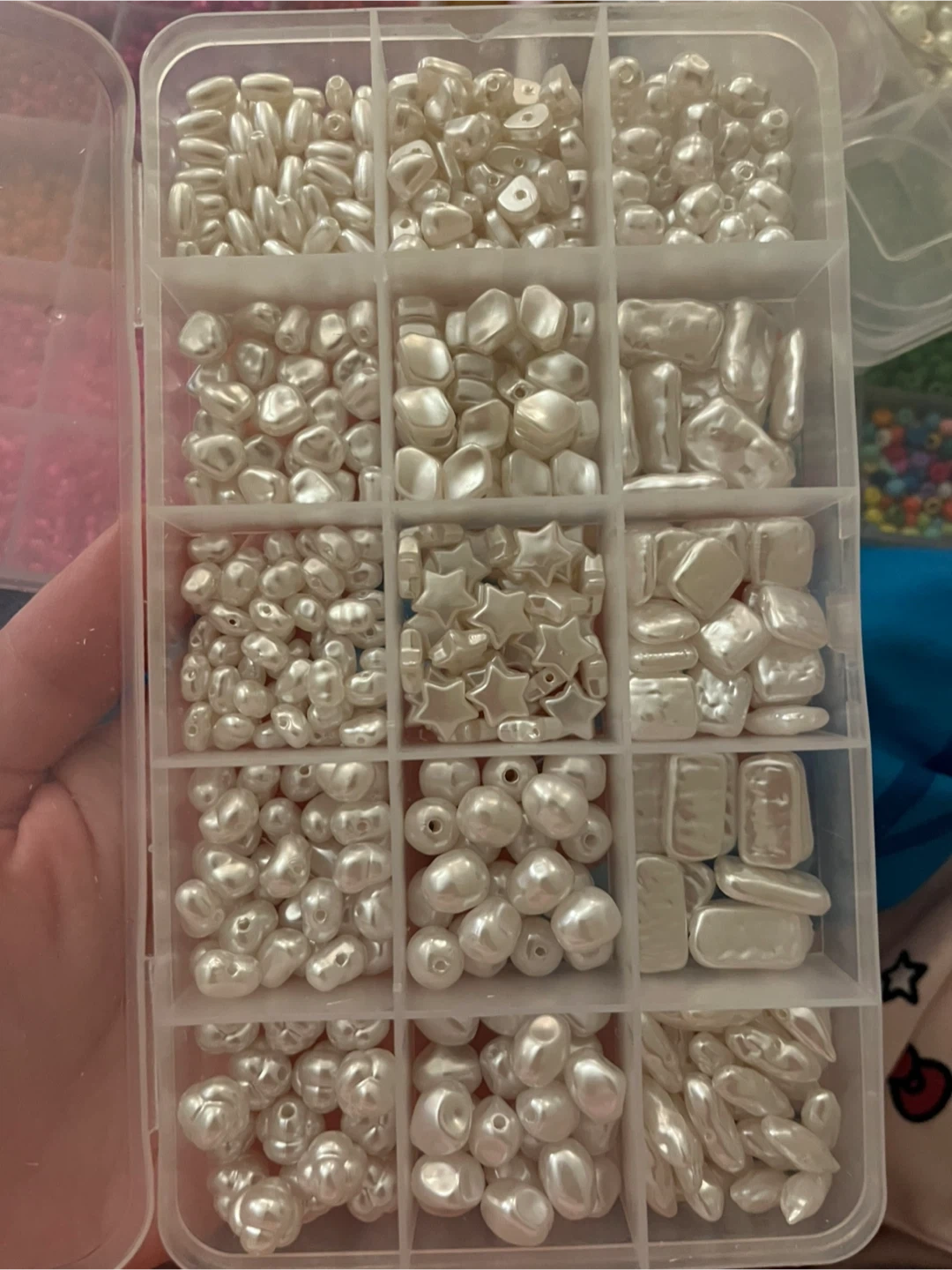Huge assortment of craft beads, charms, and findings for jewelry making. Includes faux pearls, glass beads, metal charms, and more in various shapes and colours. Perfect for DIY projects!