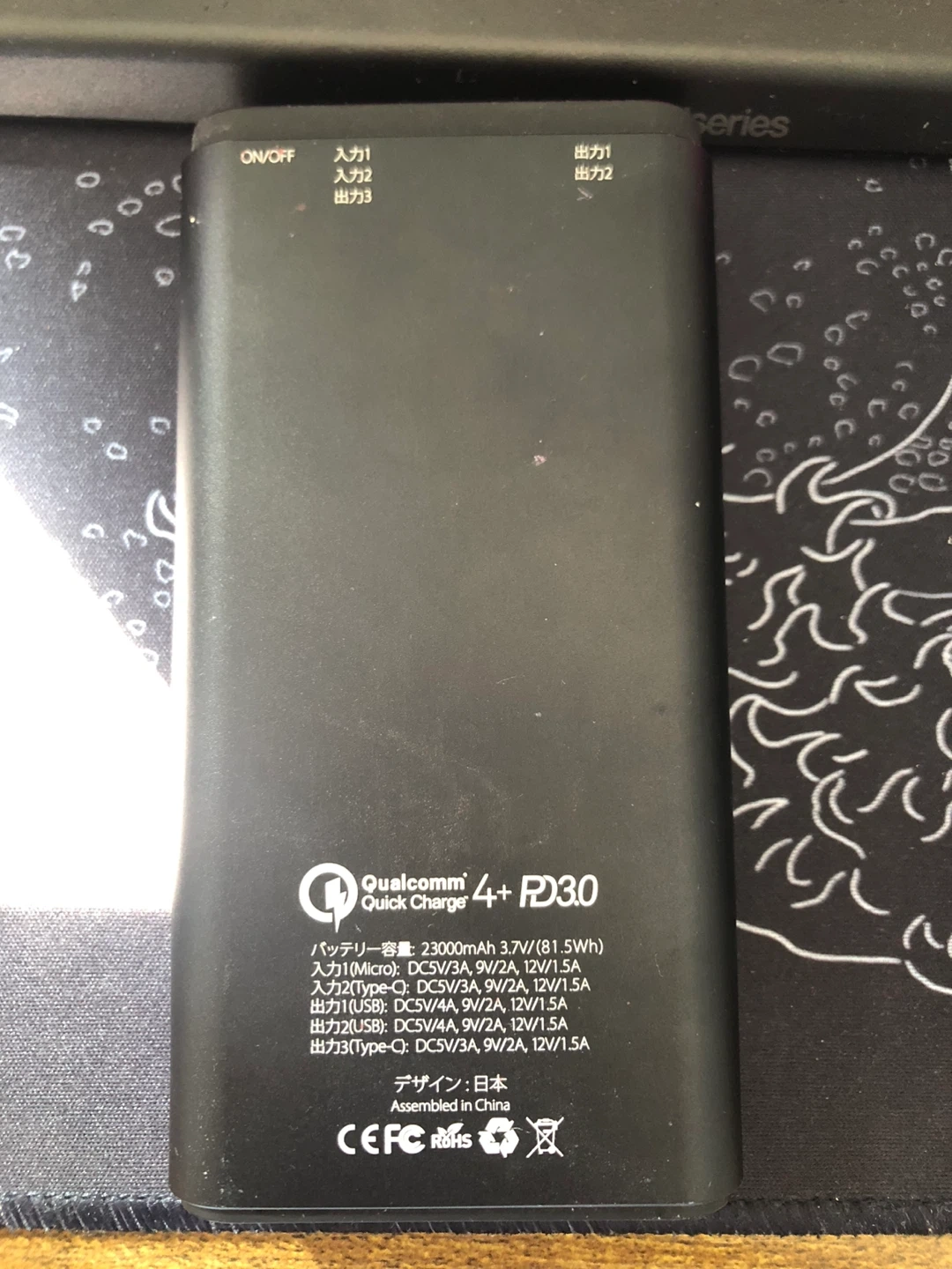Selling a InfinityX23 23000mAh Portable Power Bank - Black. It has a capacity of 23000mAh (81.5Wh) and supports various outputs: 5V/3A, 9V/2A, and 12V/1.5A. It's has CE, FC, and RoHS certifications