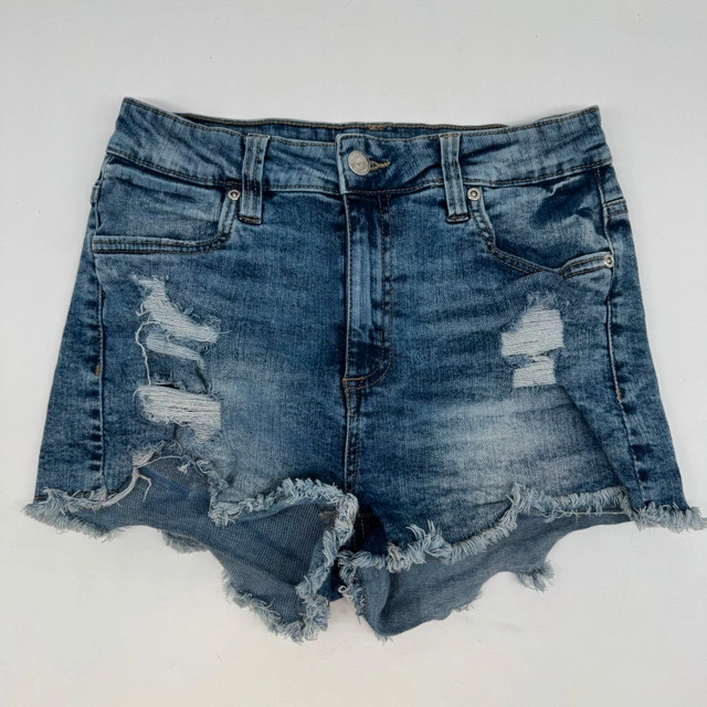 93New without tags. Bluenotes Denim women's shorts in dark wash with distressed details and frayed/raw hem. Made with a comfortable stretch blend (98% cotton, 2% spandex). Classic 5-pocket style with button/zip closure. • Brand: Bluenotes Denim • Size: 6 (Women's) • Color: Dark Blue Wash • Material: 98% Cotton, 2% Spandex • Condition: New, unworn (no tags) • Features: Distressed, frayed hem, stretch fabric, belt loops, pockets • Made in: Bangladesh Perfect for casual summer wear, festivals, and everyday style. Pickup in North york Delivery available for extra (CL)1289