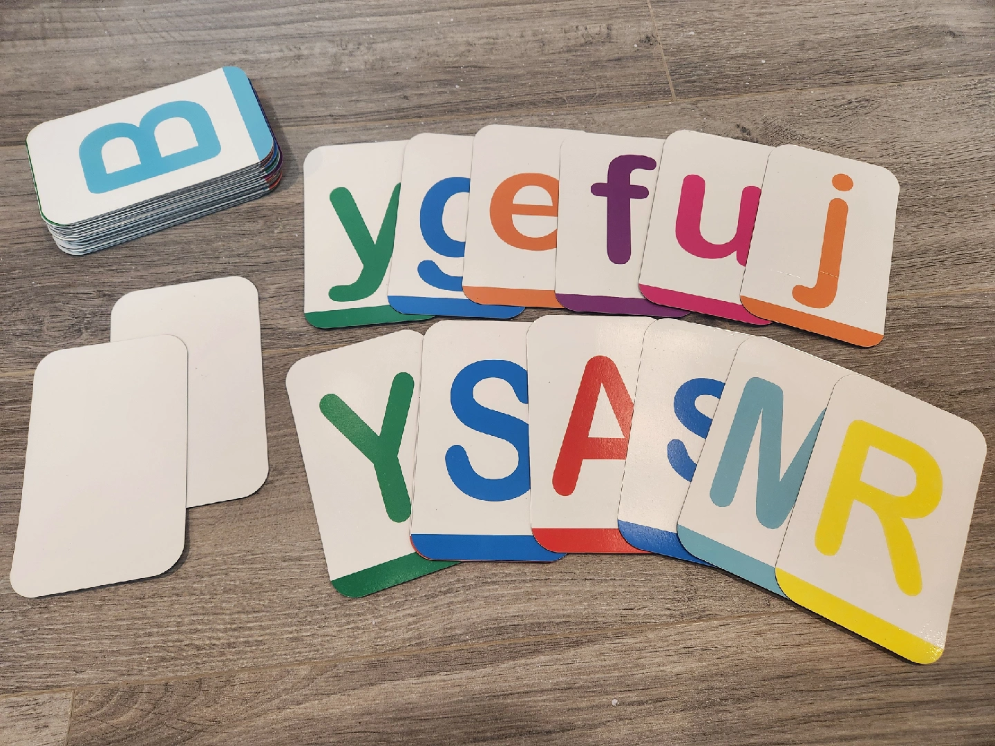 Includes 2 blank cards which you can dry-erase and use flexibly to create words.