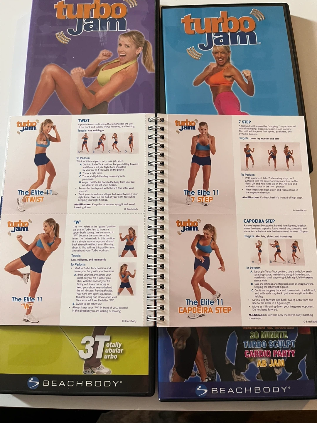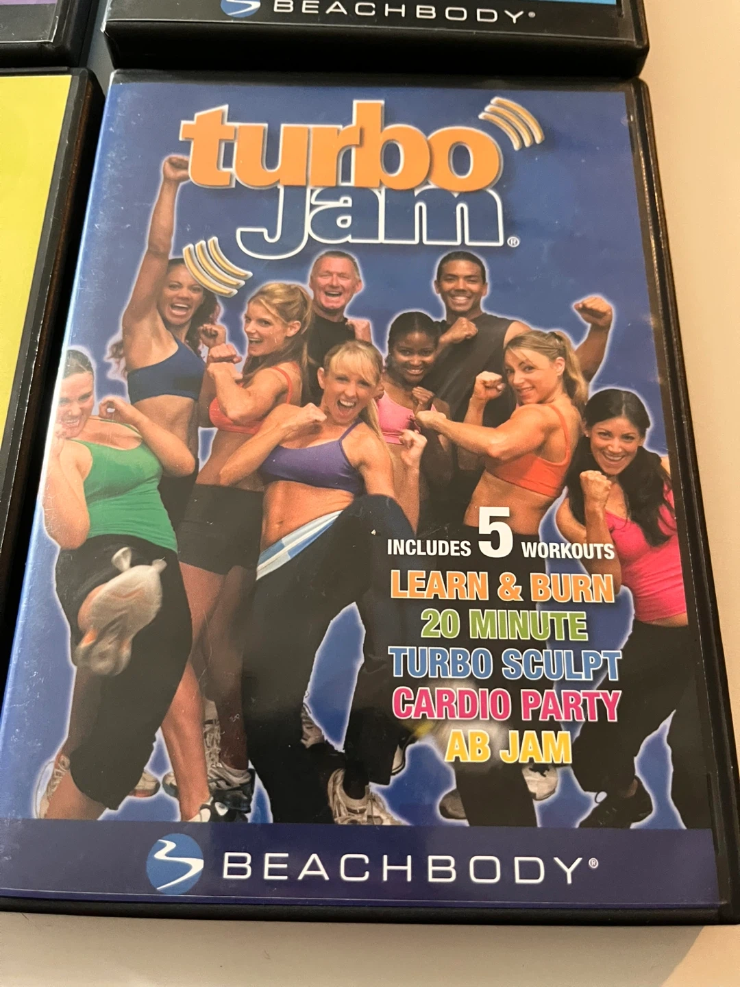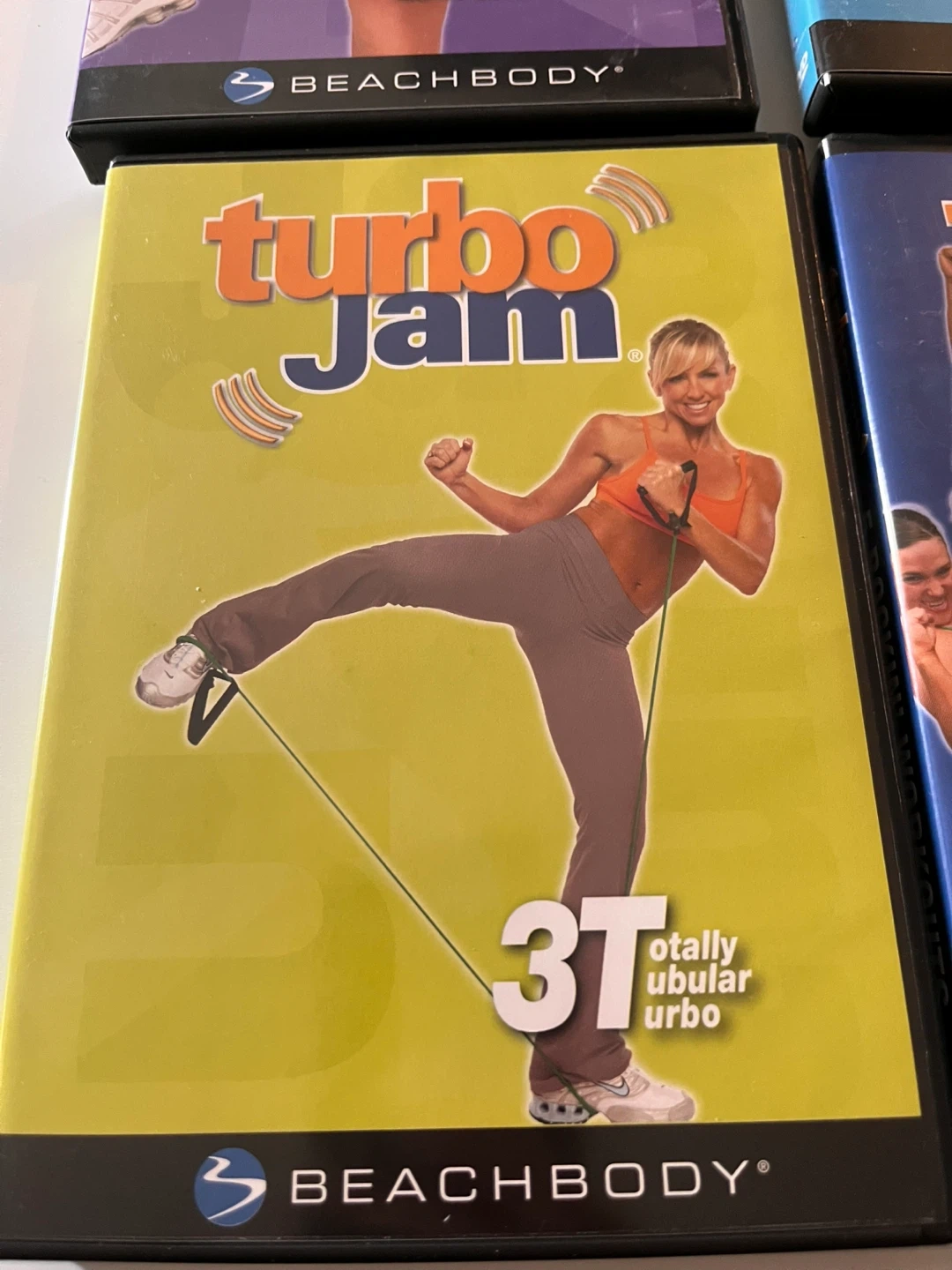 Turbo Jam DVD set! Includes Guidebook, Recipes, and four Turbo Jam DVDs: Lower Body Jam, Punch, Kick & Jam, 3T Totally Tubular Turbo, and 5 Workouts (Learn & Burn, 20 Minute Turbo Sculpt, Cardio Party, Ab Jam)!