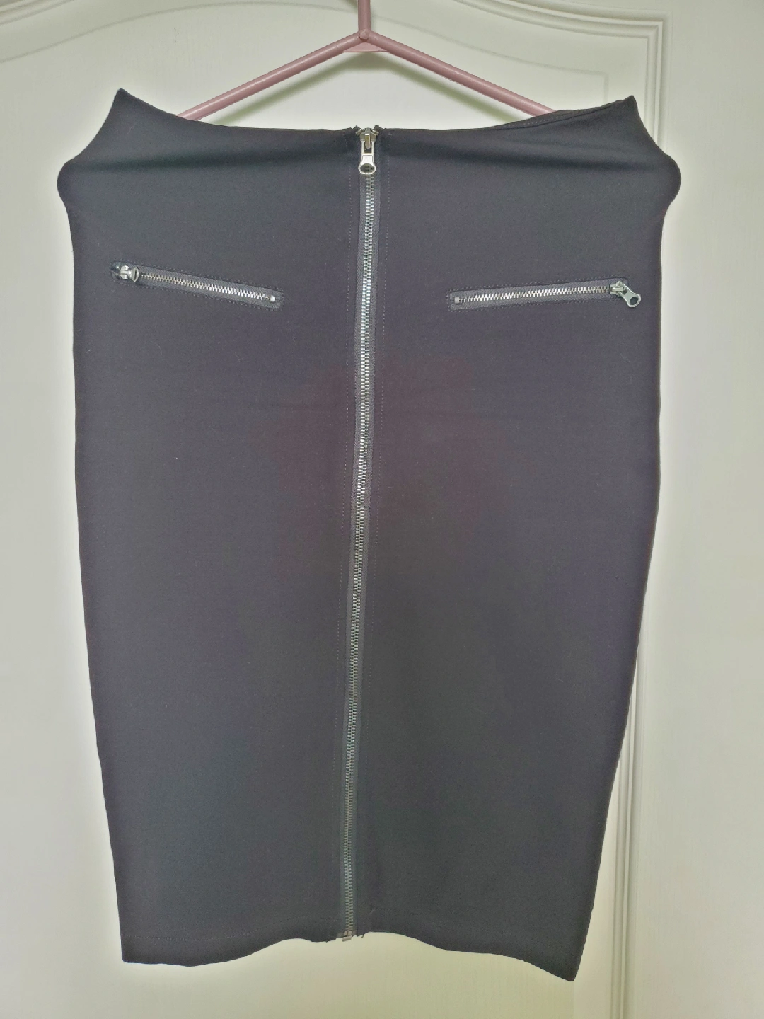 82Cute and versatile black pencil skirt from Romeo & Juliet Couture in excellent condition. It has a zipper down the front and small zippered pockets, the fabric is stretchy, so it can fit sizes S and M, 24" long top to bottom. No issues or damage. Pickup in South Etobicoke.