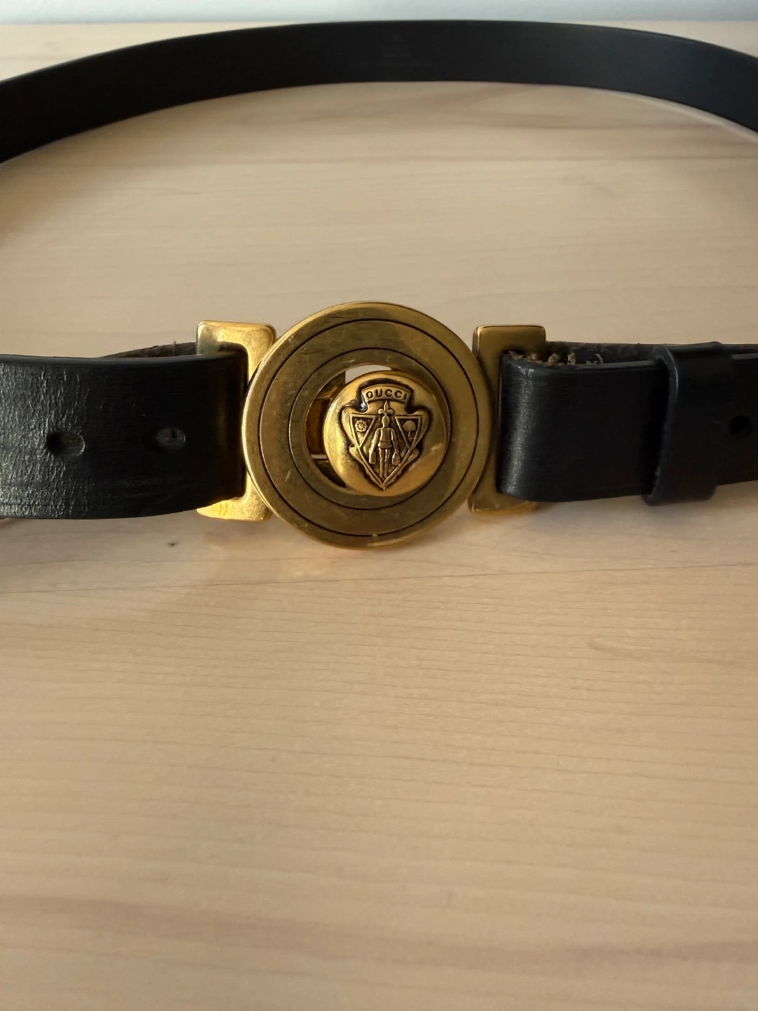 Selling a stylish Gucci belt! It features a classic black leather strap and a striking gold-tone buckle with the iconic Gucci logo. It's in great condition and ready to elevate your outfit. Perfect for adding a touch of luxury to any look! Length is 38 with room to adjust more a little more length.