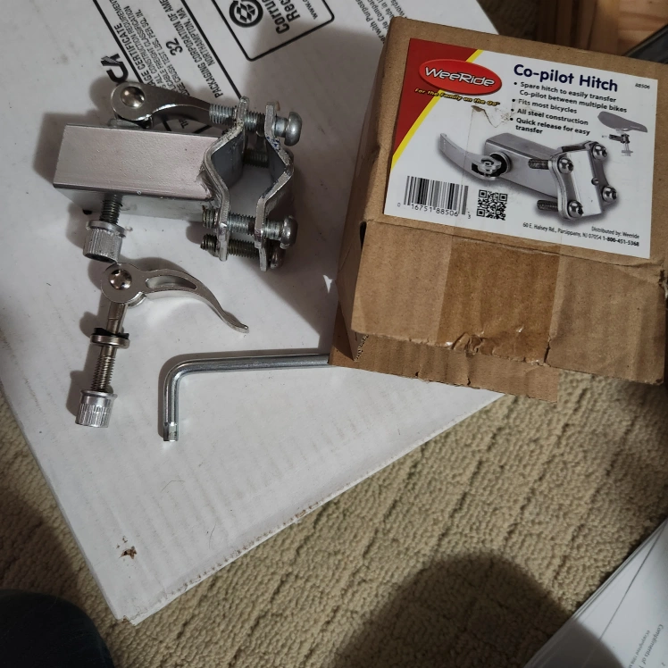 Selling a WeeRide Co-pilot Hitch! It's a spare hitch that makes it easy to transfer the Co-pilot between multiple bikes. Fits most bicycles and has an all-steel construction. It also features a quick release for easy transfer. Comes with the box!