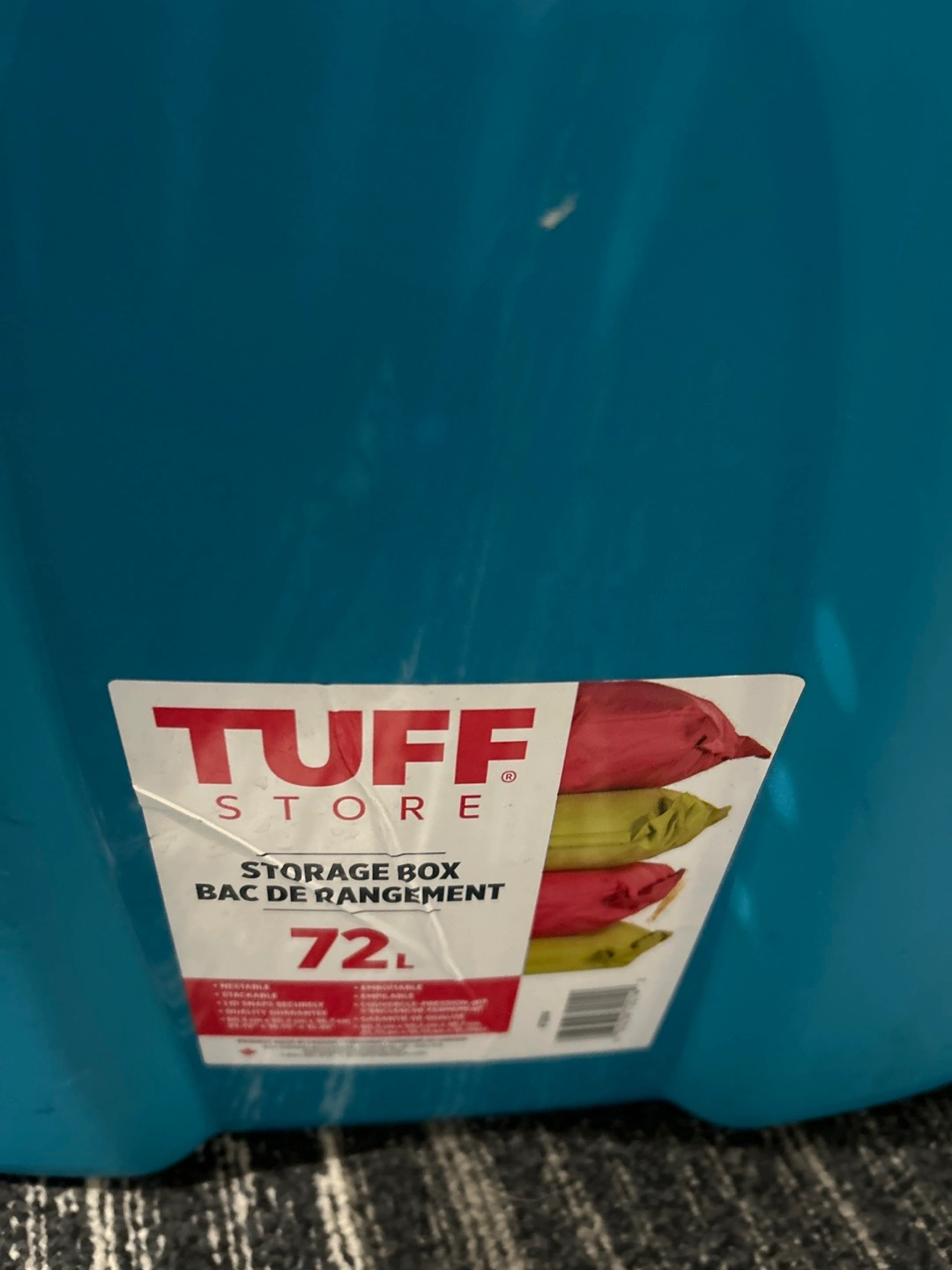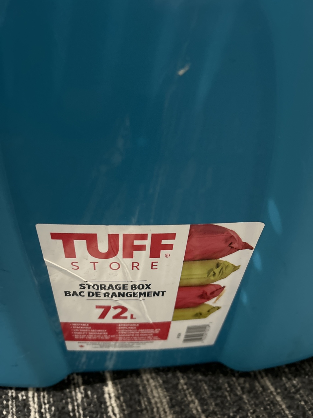 Selling a Tuff Store storage box with a 72L capacity. It's a great size for storing various items around the house. It is in good condition and ready for a new home!