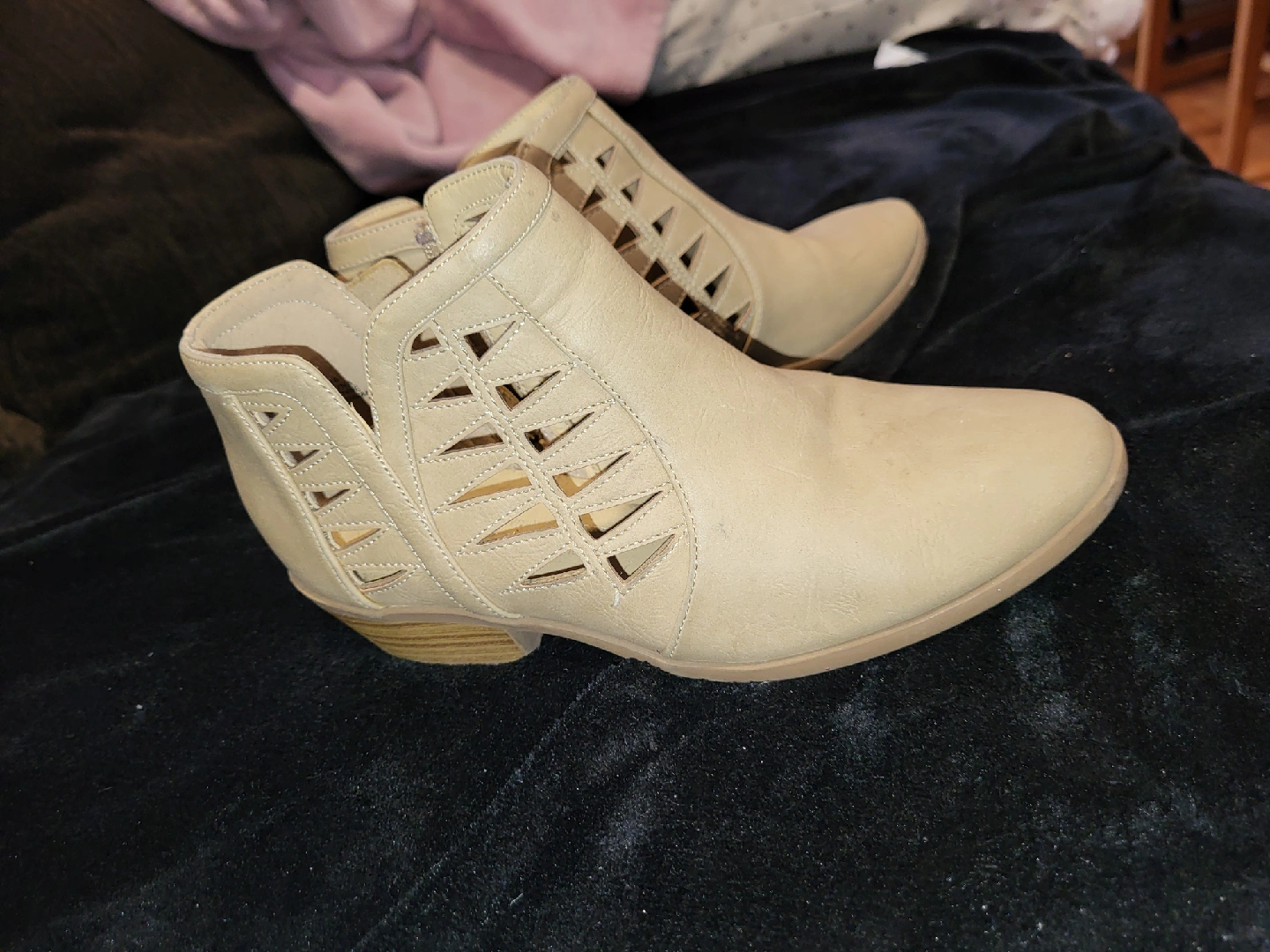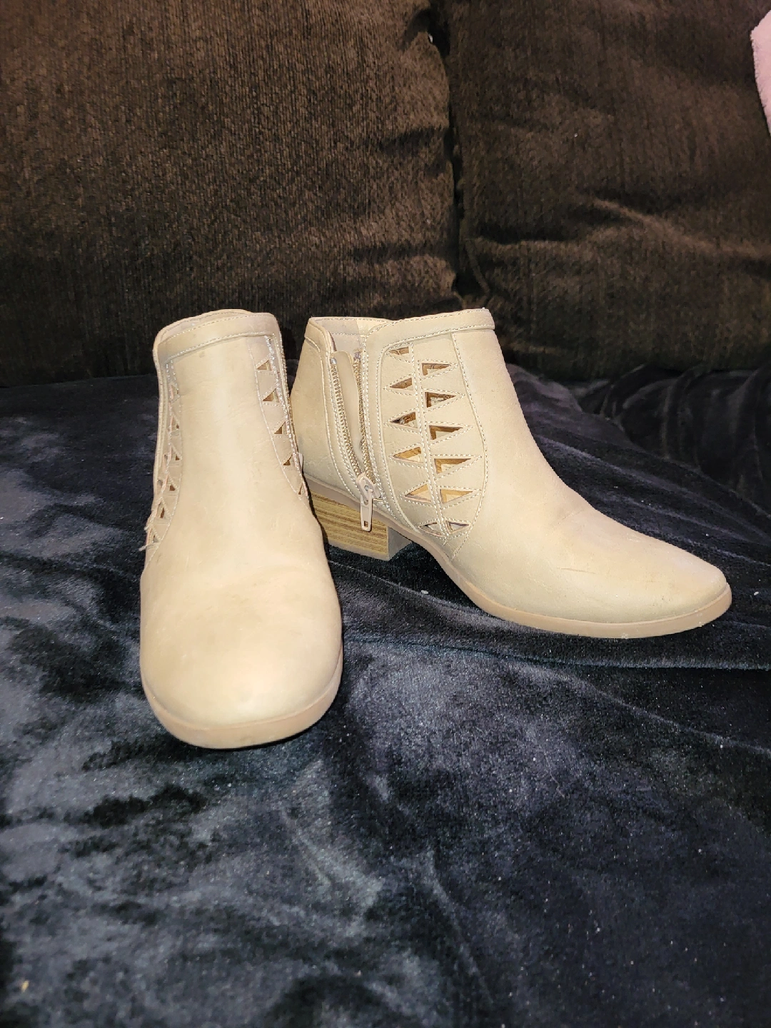 Cute cream-coloured ankle boots, perfect for adding a touch of style to any outfit! They're in great condition and ready for a new home. Size 5 - fits small and thin