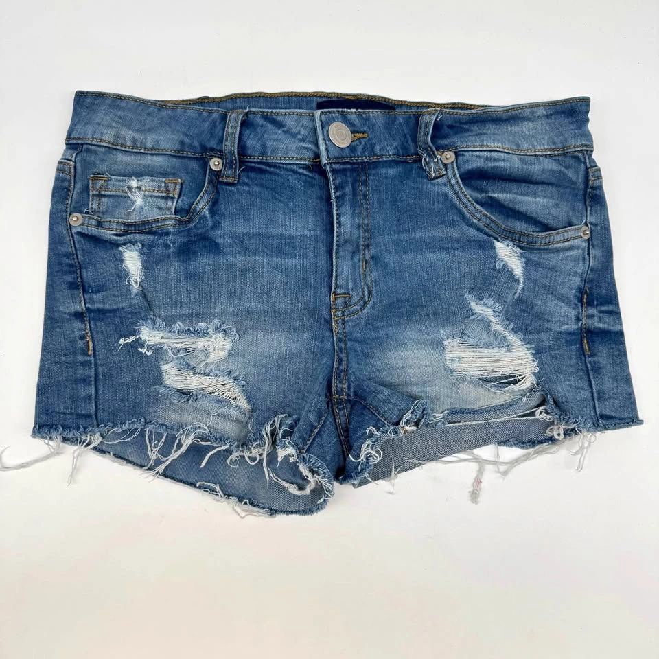 93Trendy AERO denim shorts for women, size 6. Features a distressed/frayed hem and ripped details for a stylish casual look. Low Rise Midi fit, perfect for summer wear. Details: • Brand: AERO • Style: Low Rise Midi Shorts • Size: Women's 6 (US) • Material: 98% Cotton, 2% Spandex (stretch comfort) • Color: Blue Denim • Features: Distressed, ripped, frayed hem • Made in Bangladesh Perfect for casual, everyday, or summer outfits 📍 Pickup in North york Delivery available for extra (CL)1290