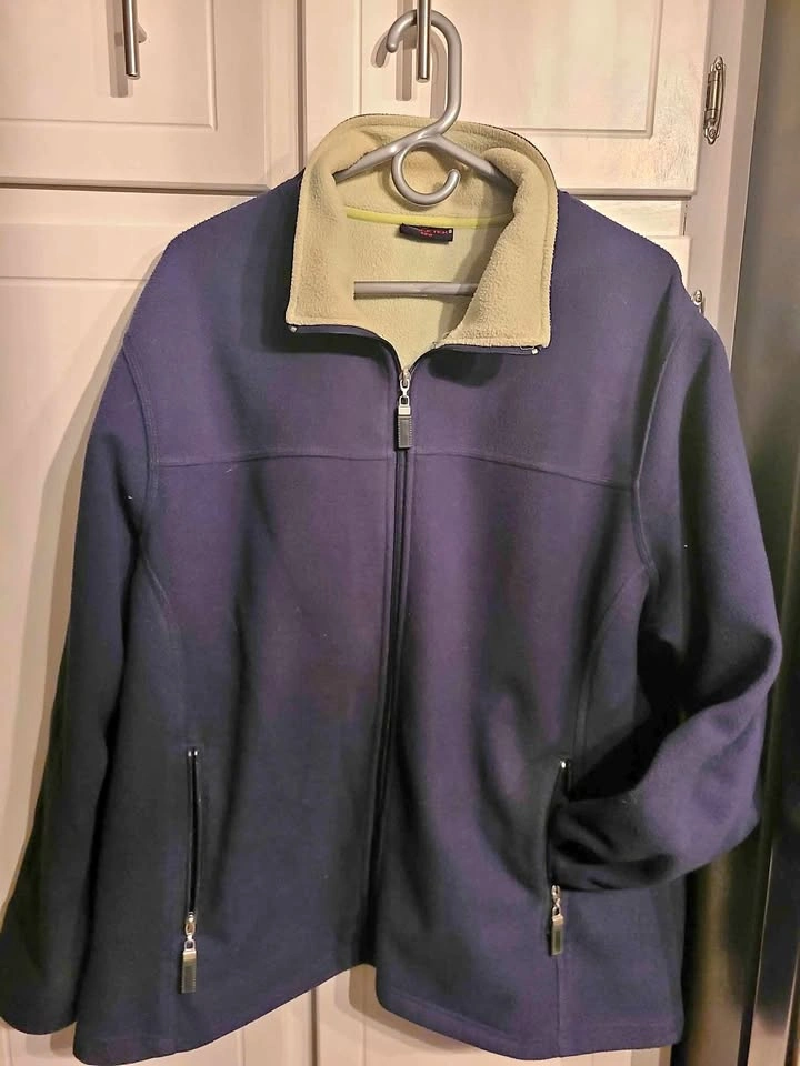 25Women's size 22W. Dark blue jacket with two large zippered pockets. Inside of jacket is green. Excellent condition. More of a spring/fall jacket, not for cold Winters. Pick up near Lou's Grill in Abbotsford.