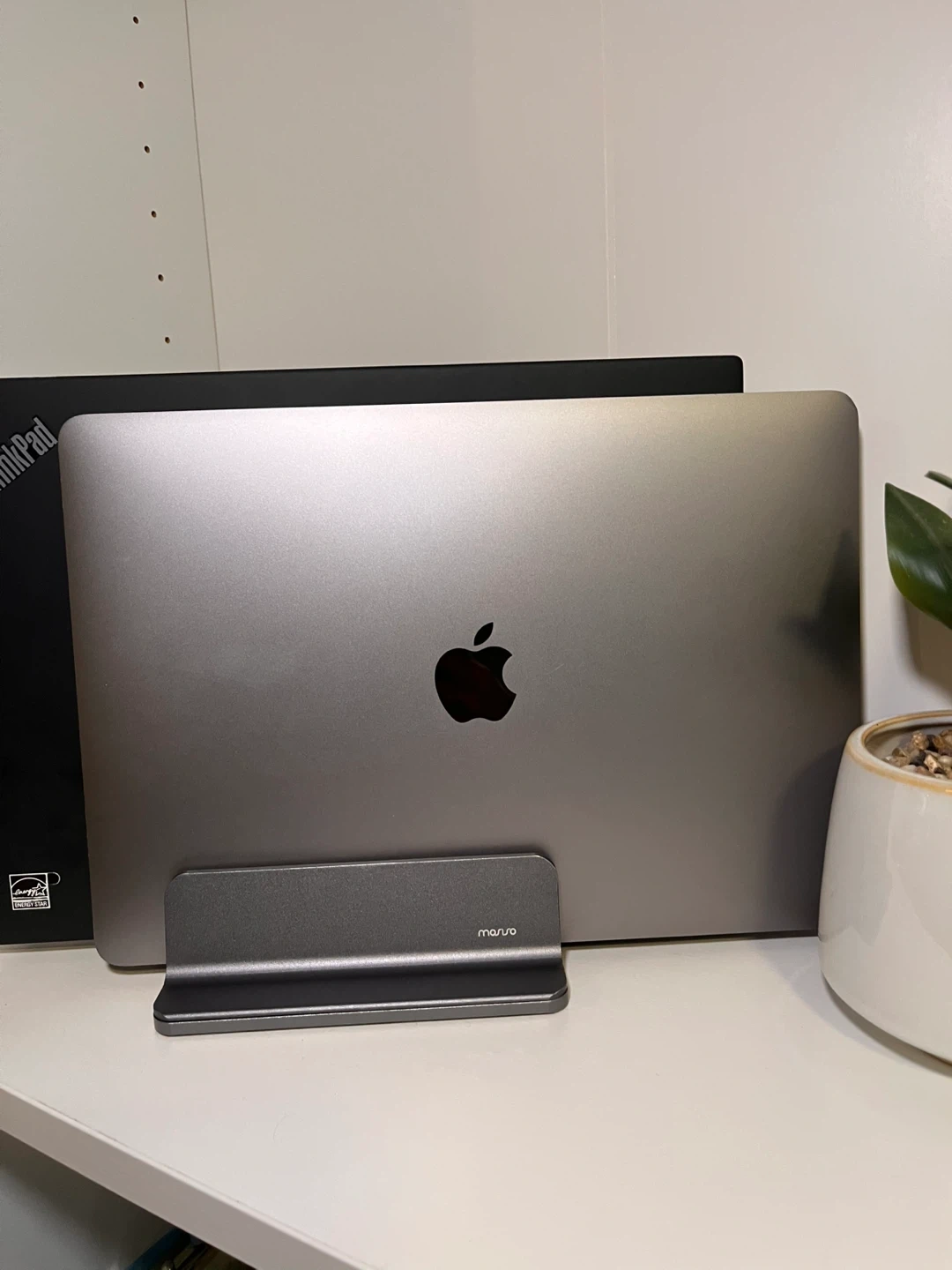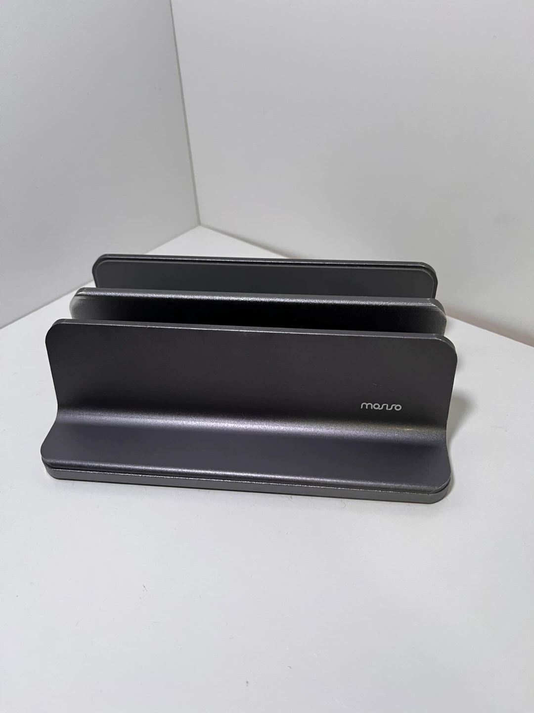 Selling a laptop stand in space grey. It's in great condition and perfect for putting your laptops away for a clean desk.
