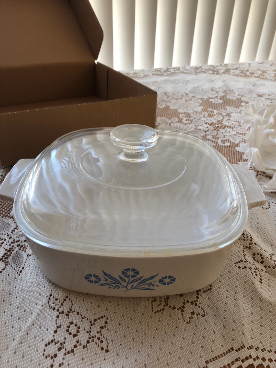 Selling a brand new CorningWare casserole dish! It comes with a lid and the original box. Features a lovely blue floral design. Perfect for baking and serving your favourite dishes