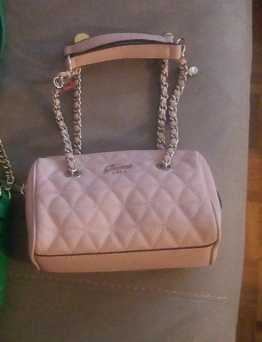 Selling a cute mini Guess handbag in a lovely shade of pink! It features a quilted design and chain straps. Perfect for adding a touch of style to any outfit
