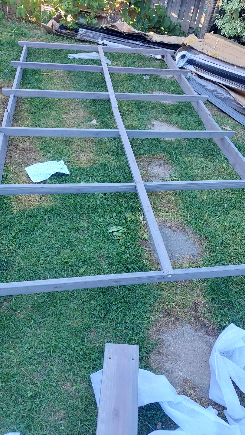 This is a wooden frame structure, possibly for a shed or some other outdoor construction project. It appears to be partially assembled and in good condition, ready for someone to complete the build. Great for DIY enthusiasts!