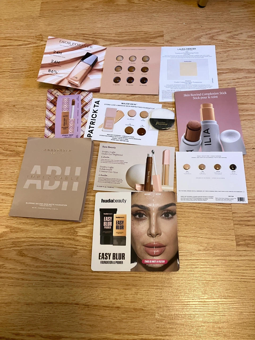 Selling a collection of makeup samples from various brands and a brand new Clarins brush! Includes foundation, concealer, powder and primer samples. Brands include benefit, Laura Mercier Translucent Powder, Ilia Skin Rewind Complexion Stick, Dior Forever Foundation, Patrick Ta, Huda Beauty, and more! Perfect for trying out new products before committing to the full size.