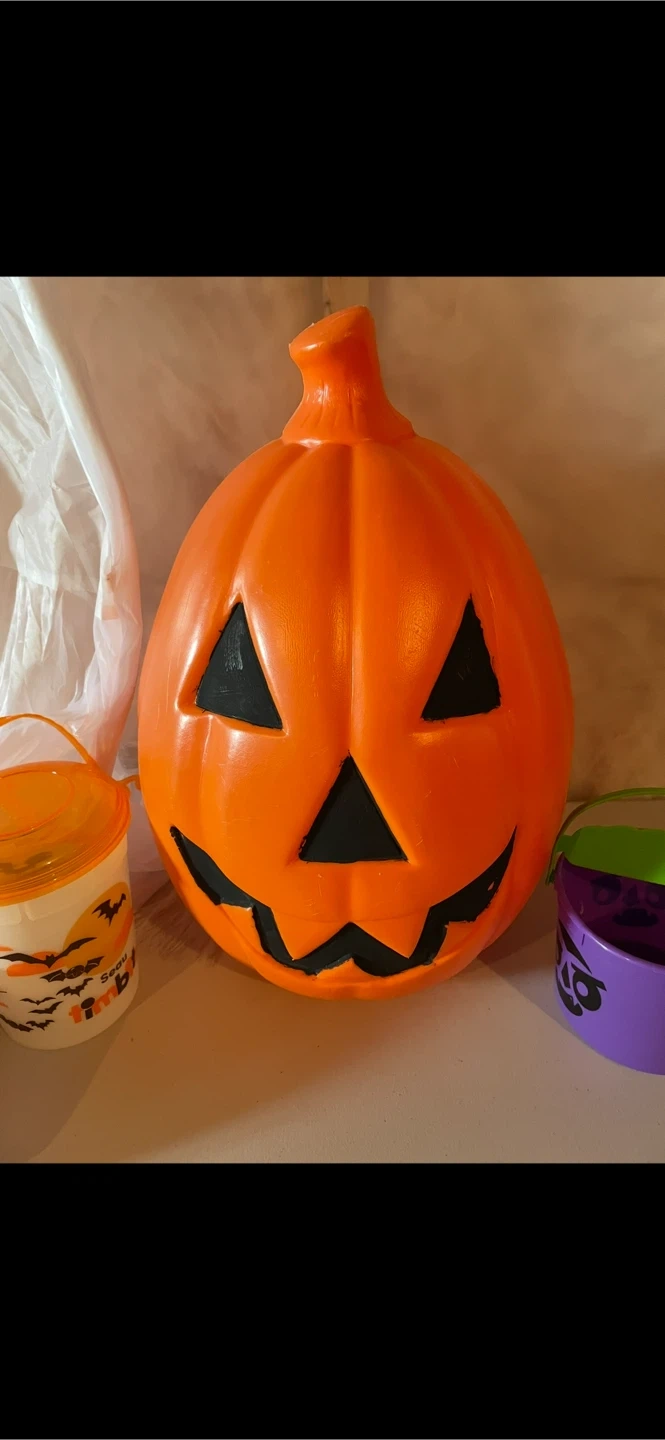 Here's a vintage Halloween pumpkin blow mold decoration! It's in great shape and ready to add some spooky charm to your home this Halloween season $20.