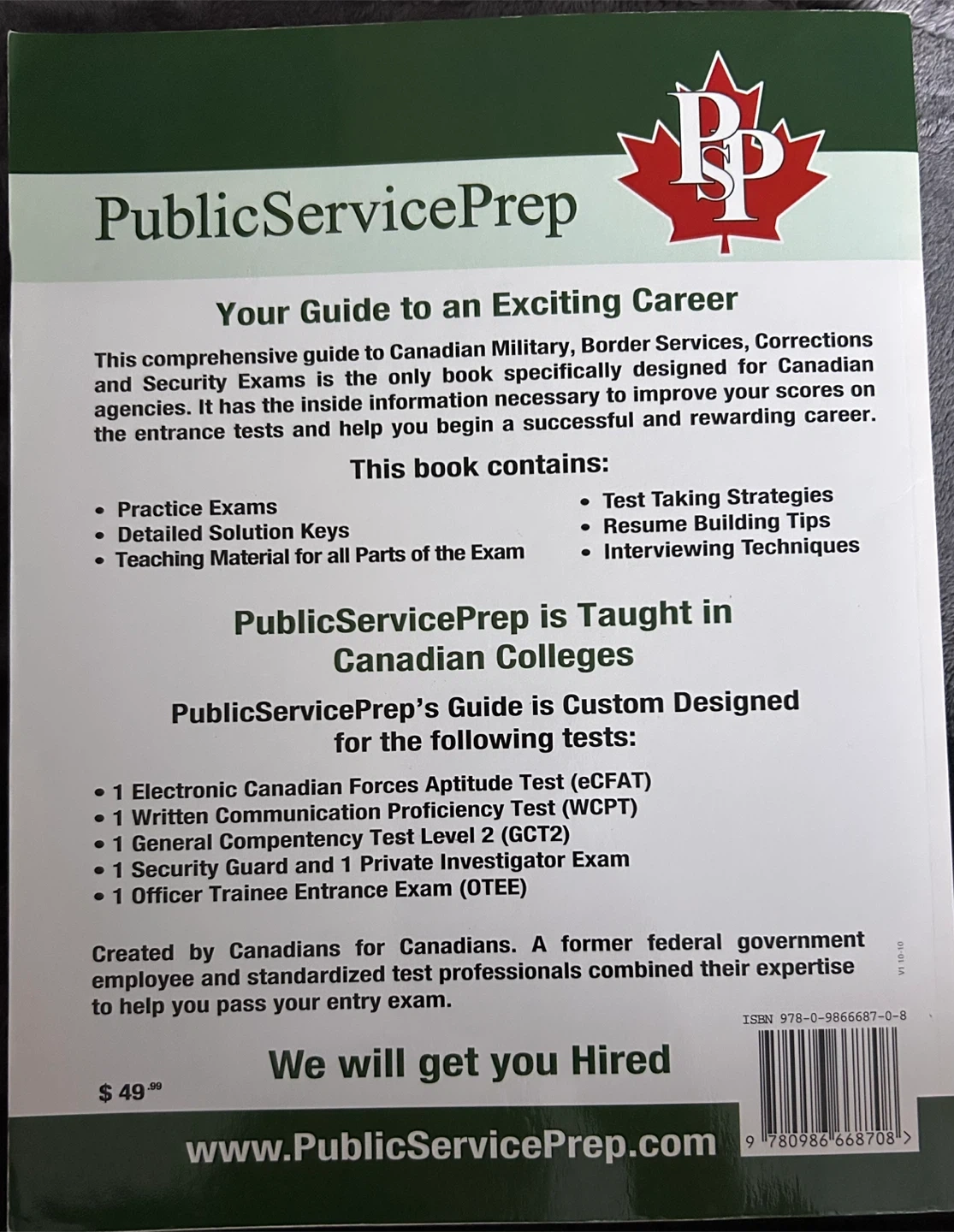 60Comprehensive guide to Canadian Military, Border Services, Corrections and Security Exams. This book is specifically designed for Canadian agencies and has the inside information necessary to improve your scores on the entrance tests and help you begin a successful and rewarding career. Originally bought for $49.99