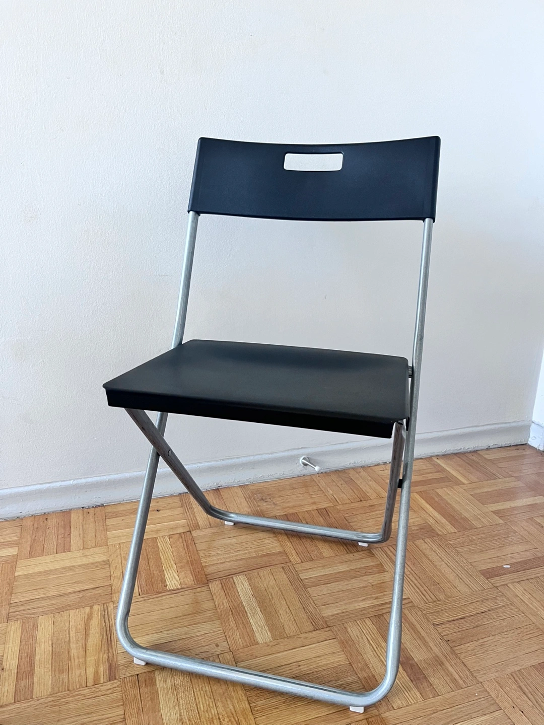Selling 3 handy black folding chair! $10 for each.. Perfect for extra seating when you have guests or for small spaces where you need a chair that can be easily stored away. It's in great shape and ready for a new home