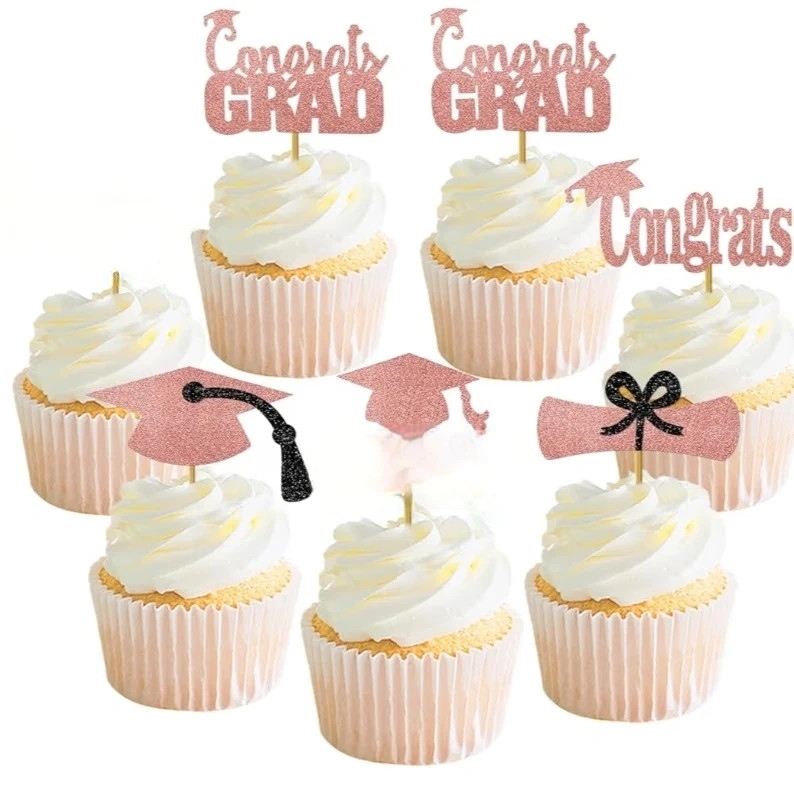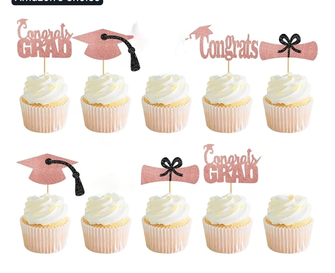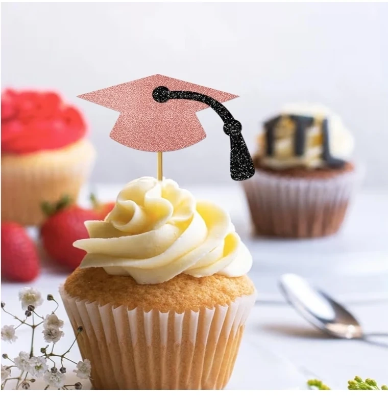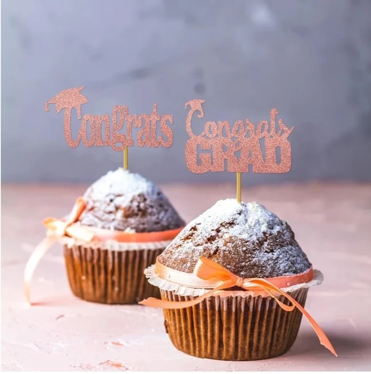20 graduation cupcake toppers for your grad party! They say "Congrats", "Grad", and have graduation caps and diplomas