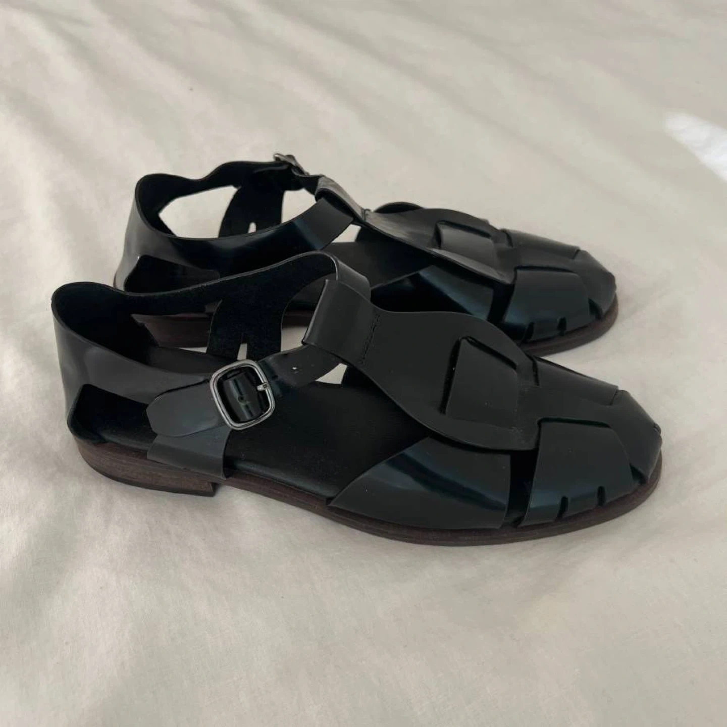 Hereu Black Pesca Fisherman Patent Leather Sandal - Size 37
