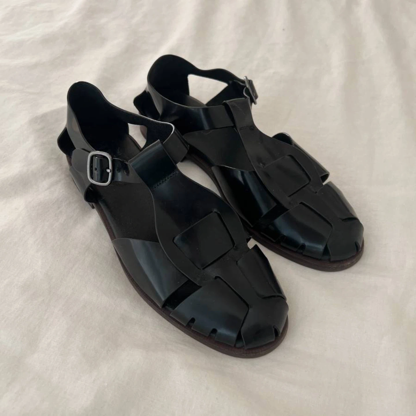 Hereu Black Pesca Fisherman Patent Leather Sandal