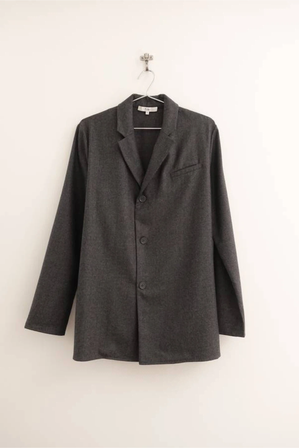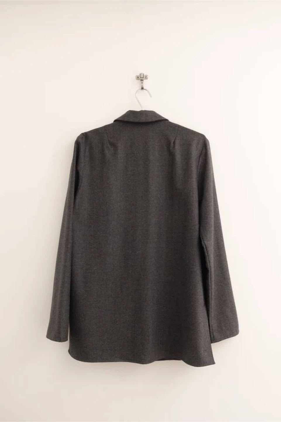 Tibi Charcoal Wool Boxy Blazer Jacket - M