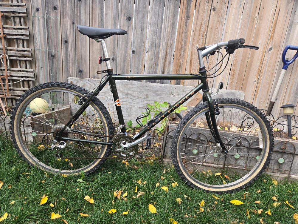 Selling a Mens Gary Fisher Aquila 20 inch mountain bike. It features Shimano STX components and an olive green frame. Ready for some off-road adventures! Brand new tubes put on last week, a $70 value.